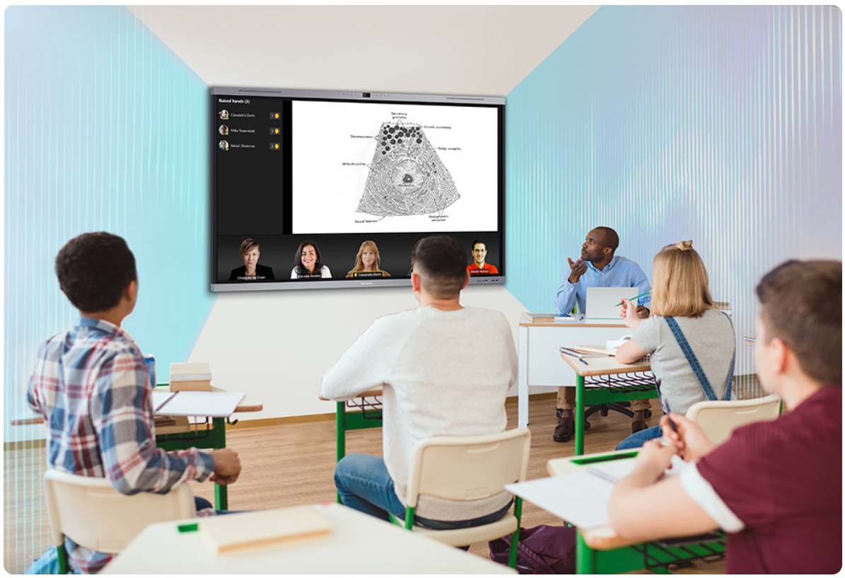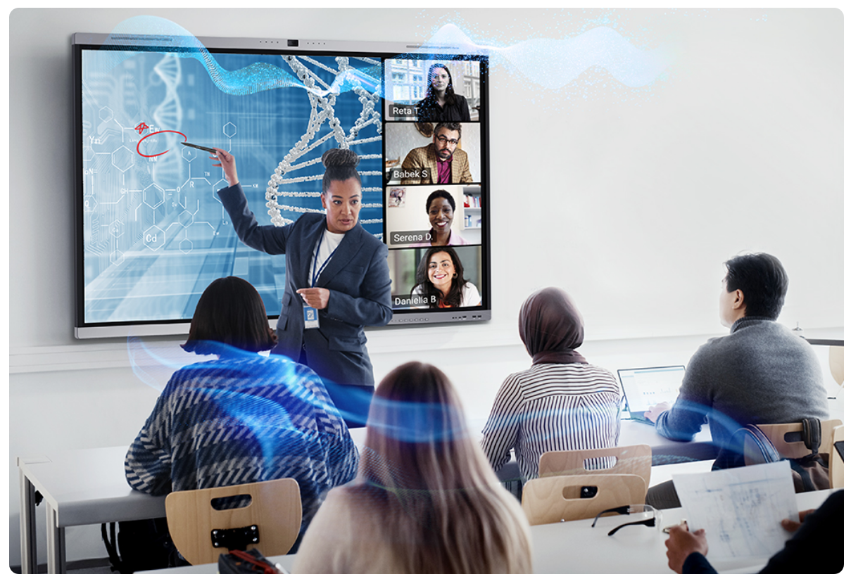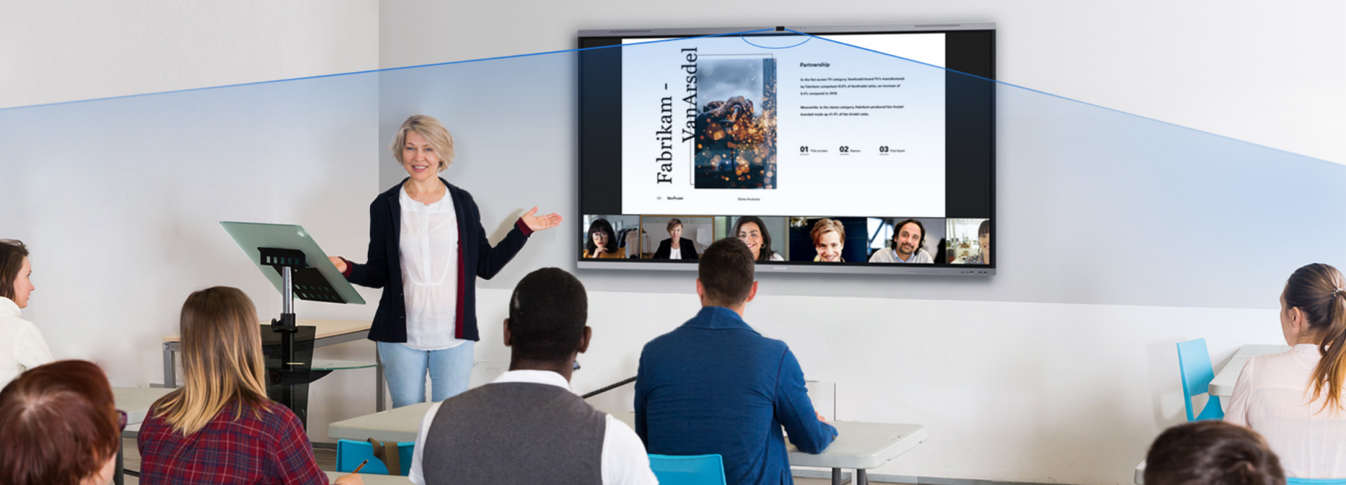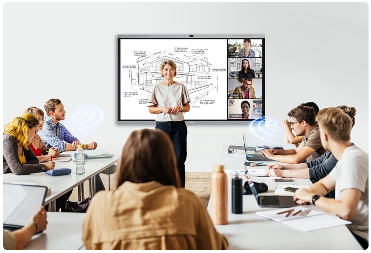 By leveraging auto-framing, the display adapts to the number of participants and their location, delivering an optimal angle for a face-to-face interaction experience.