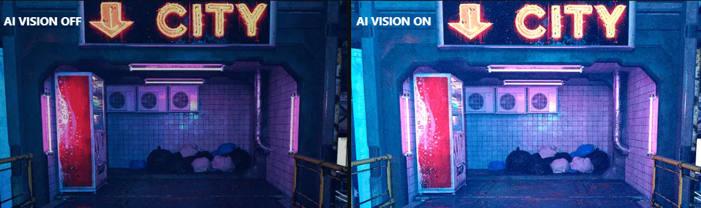 - AI Vision - The new AI Vision technology can not only reveal details in dark areas but also enhance overall brightness and saturate colors.