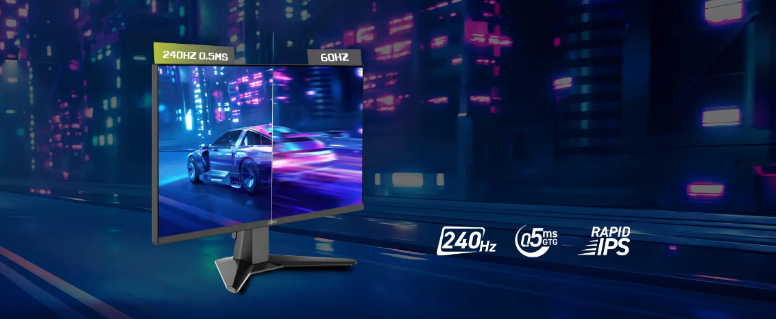 - Rapid IPS Panel - Provides 0.5ms (GtG, Min.) response time, optimizes screen colors and brightness.