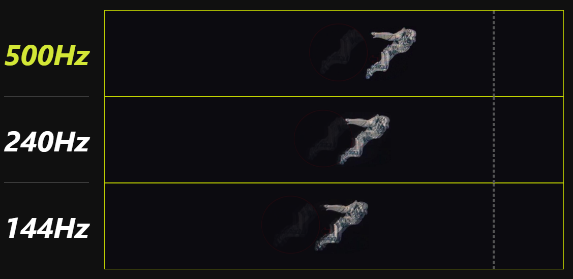 - Fastest 0.03ms GtG response time and 500Hz refresh rate.