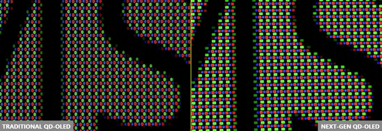 QD-OLED monitor features the latest generation QD-OLED panels. The sub pixel arrangement improves your experience,providing sharper images, finer details, and clear text.