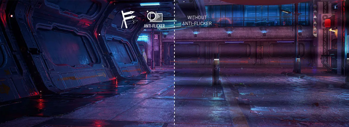 Anti-Flicker and Less Blue Light technologies provide a very comfortable viewing experience byreducing the amount of flicker and displaying lower levels of blue light. You can game for longer periods without experiencing eye fatigue.
