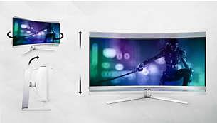 The Compact Ergo Base is a people-friendly Philips monitor base that tilts, swivels and height-adjusts so each user can position the monitor for maximum viewing comfort and efficiency.