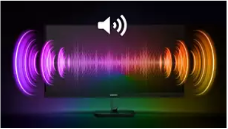 A pair of high quality stereo speakers built into a display device. It can be visible front firing, or invisible down firing, top firing, rear firing, etc depending on model and design.