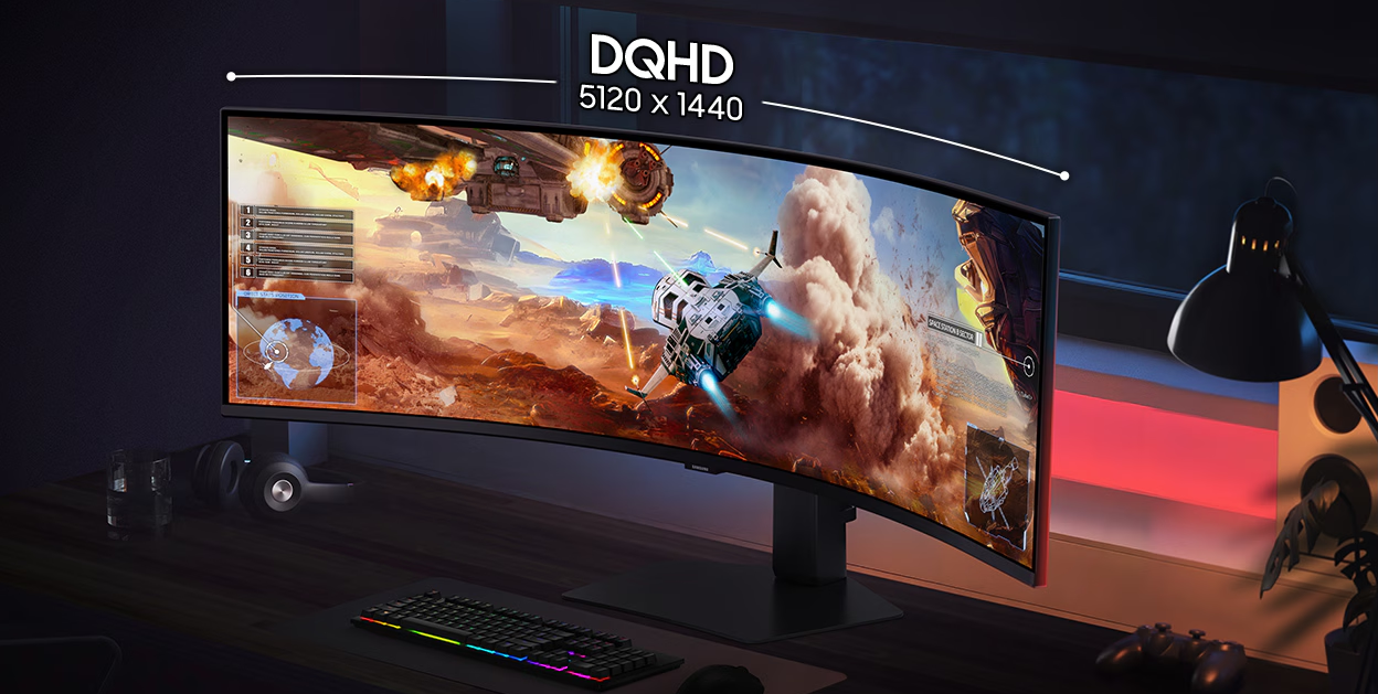 Immerse yourself in a panoramic gaming experience with a 1000R curved display. This ultra-wide 32:9 screen, equivalent to two side-by-side 16:9 monitors, delivers a full view of your enemies so you can stay one step ahead.