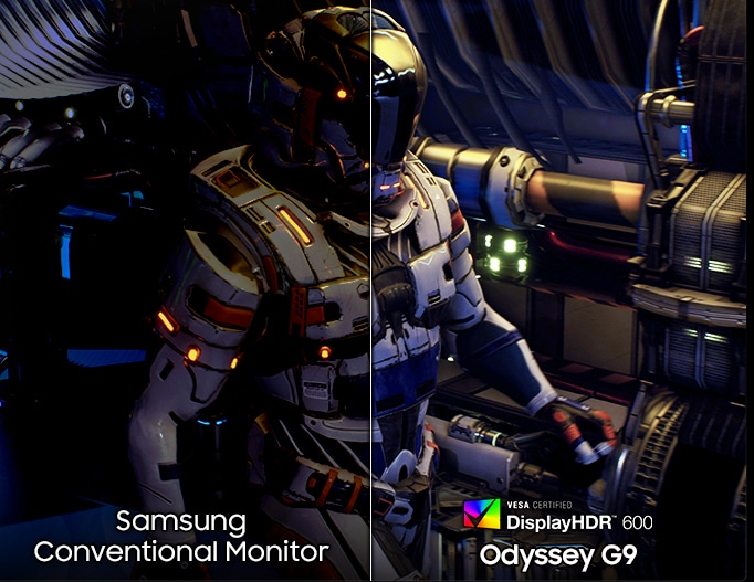 Reveal the whole picture. DisplayHDR 600 delivers more contrast, with deeper blacks and brighter whites, so details shine with clarity even in the darkest scenes.
