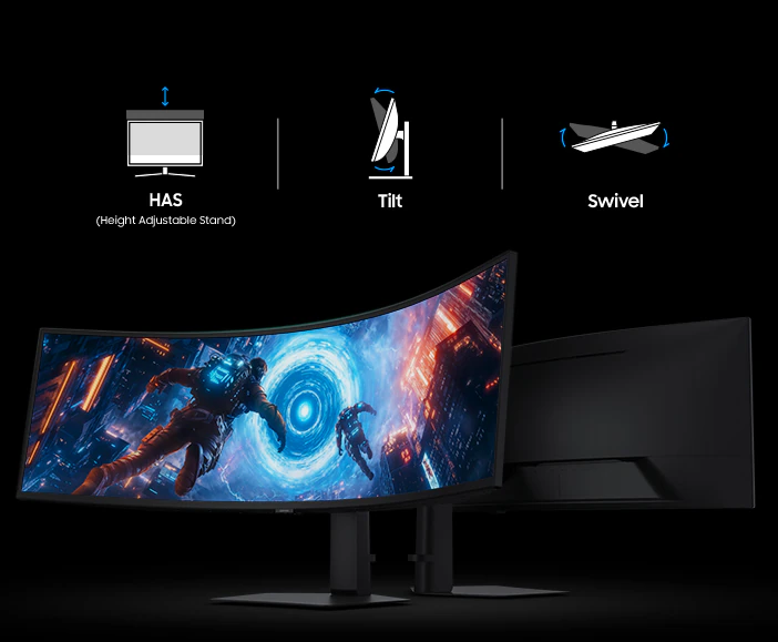 Samsung Odyssey G91F 49" Ultrawide 144Hz Curved 1000R Gaming Monitor - 5120x1440 , HDR600 - HDMI 2.1 + DP 1.4 - USB Hub , AMD FreeSync Premium Pro , Height / Swivel / Tilt adjustable , 100x100mm VESA