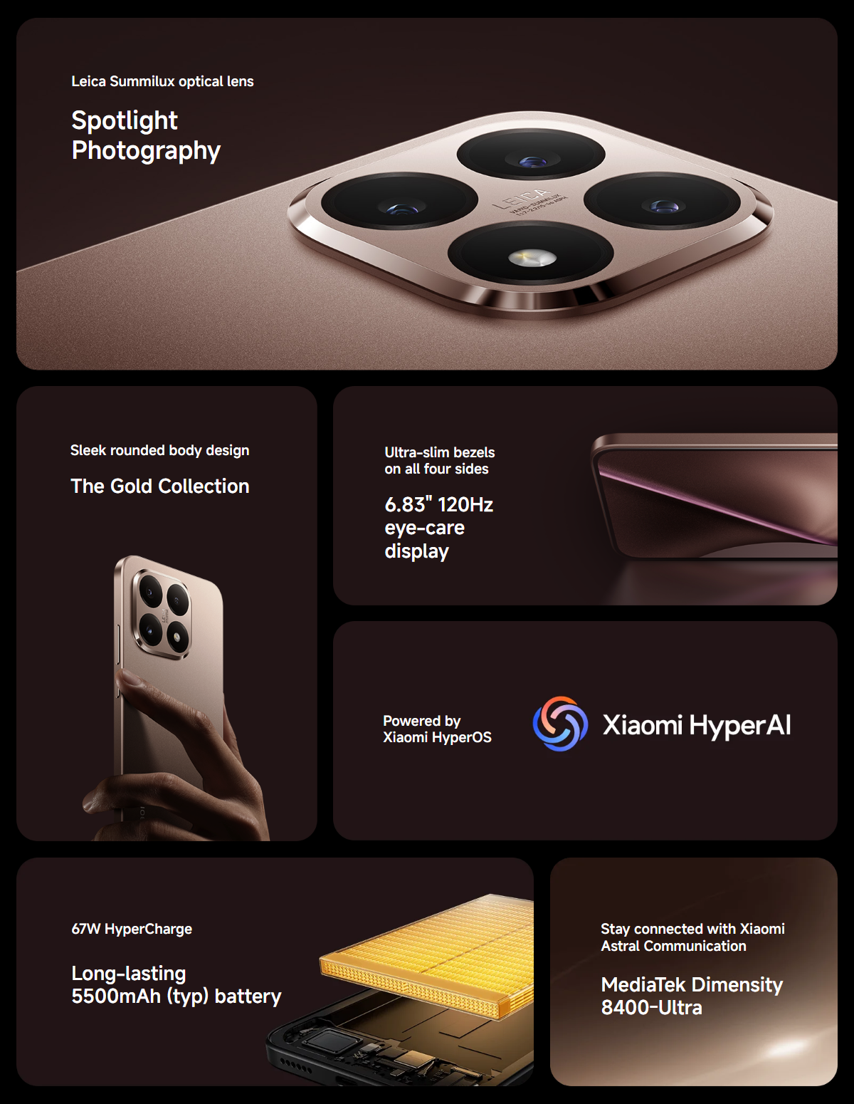 - 6.83" 120Hz eye-care display - Leica Triple Camera - 67W Hyper Charge- MediaTek Dimensity 8400-Ultra Chipset - Xiaomi HyperAI