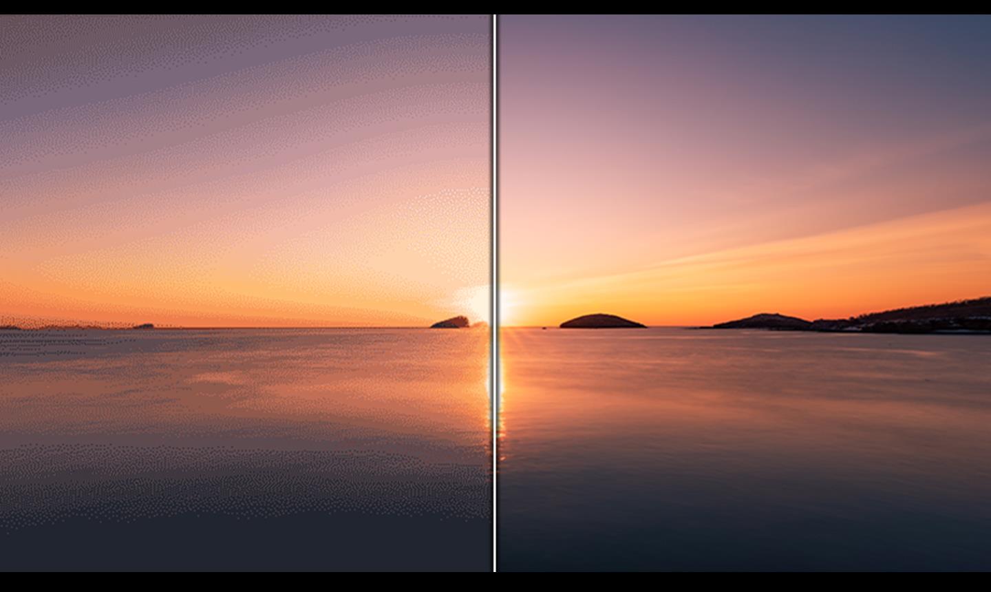 Colour depth processing precision has improved, leveraging mDNIe to ensure you see colour and gradation as the creator intended. ProScaler also enhances details with AI processing improvements, resulting in clearer images.