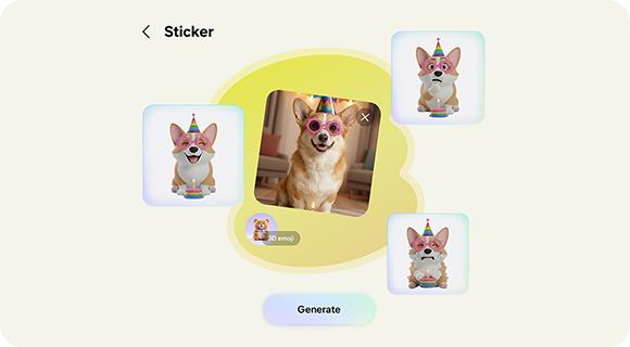 Get quick and easy photo editing with just a few words and AI. Add objects, such as accessories on photos of your pet by naturally describing the edits you wish to make, and Galaxy AI will realize your vision in minutes.