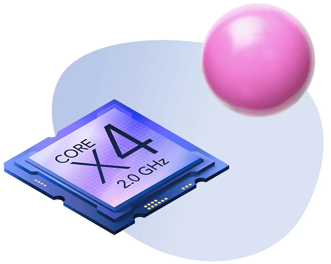 With a 2.0 GHz clock speed a quad-core processor powers up your daily tasks.