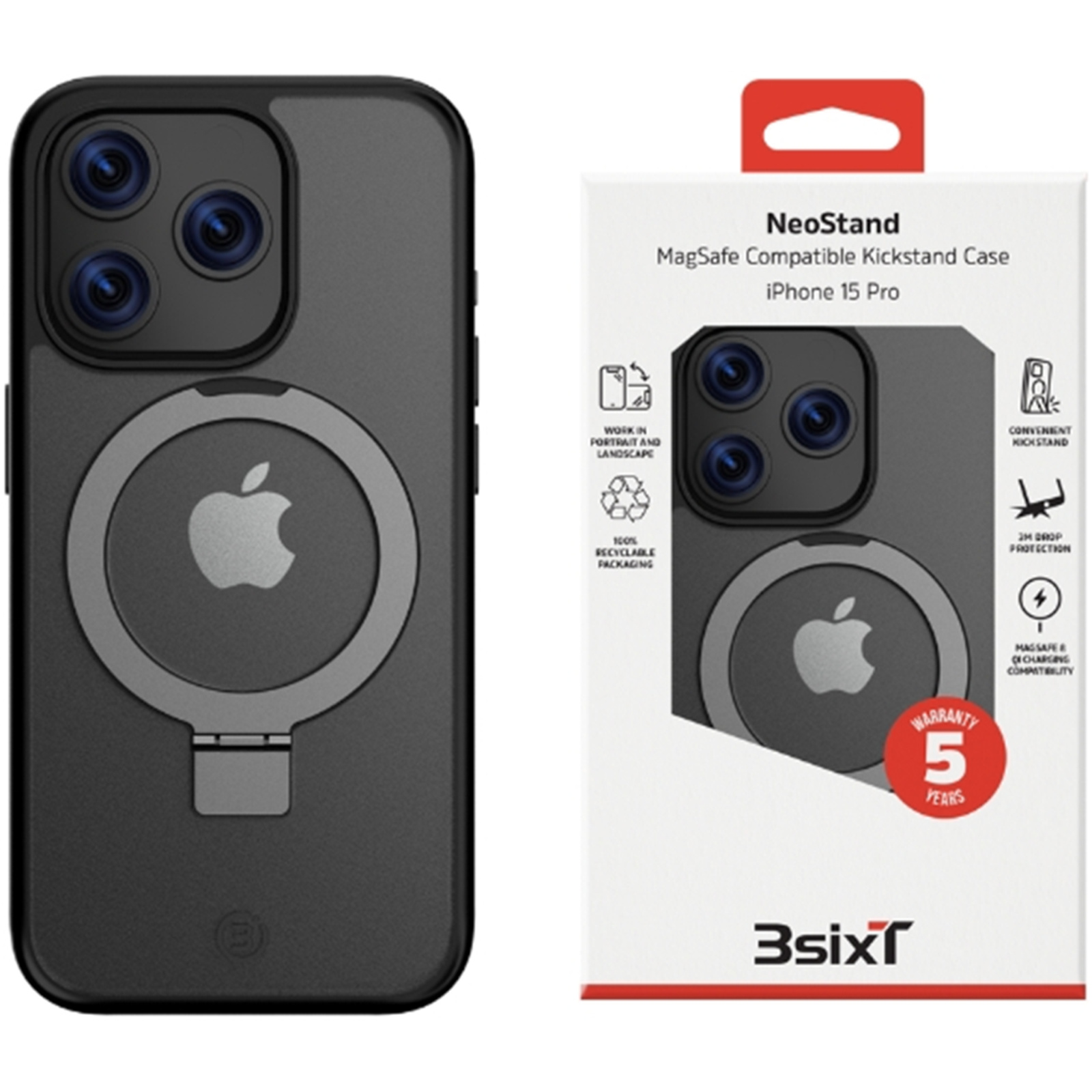 3SIXT iPhone 15 Pro Neo Stand Case - Black MagSafe - (RC)