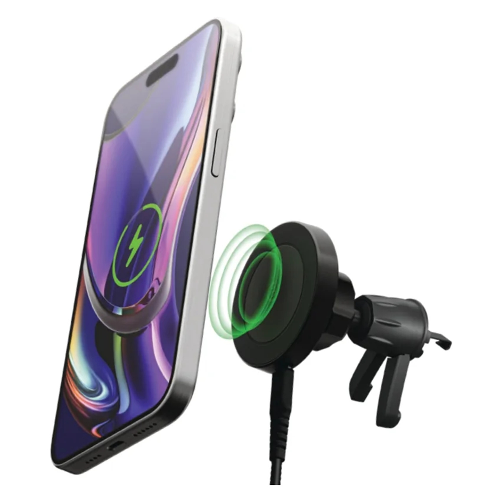 15W wireless charging vent mount suitable for MagSafe-compatible smartphones.