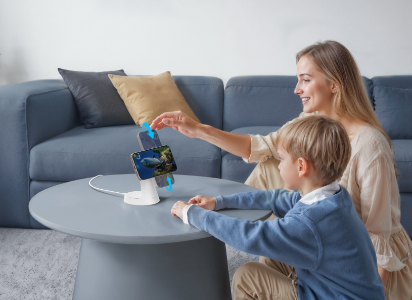 Easily adjust the viewing angle from 50° to 70° vertically and rotate 360° horizontally to find your perfect viewing position while charging.