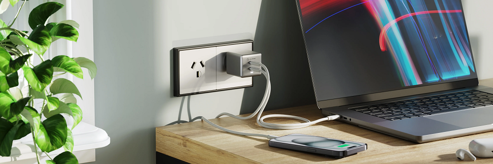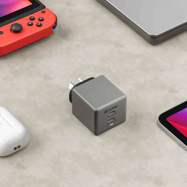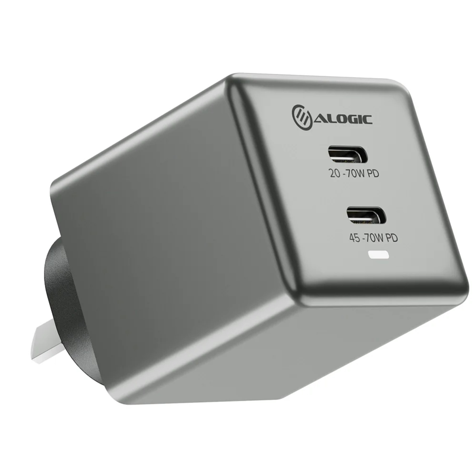 Alogic WCG2X70SGR-ANZ 2X70 Rapid Power 70W GaN Charger - 2xUSB-C can charge a variety of mid-power USB-C devices, including MacBook Airs, iPads Nintendo Switch or even notebook/laptops