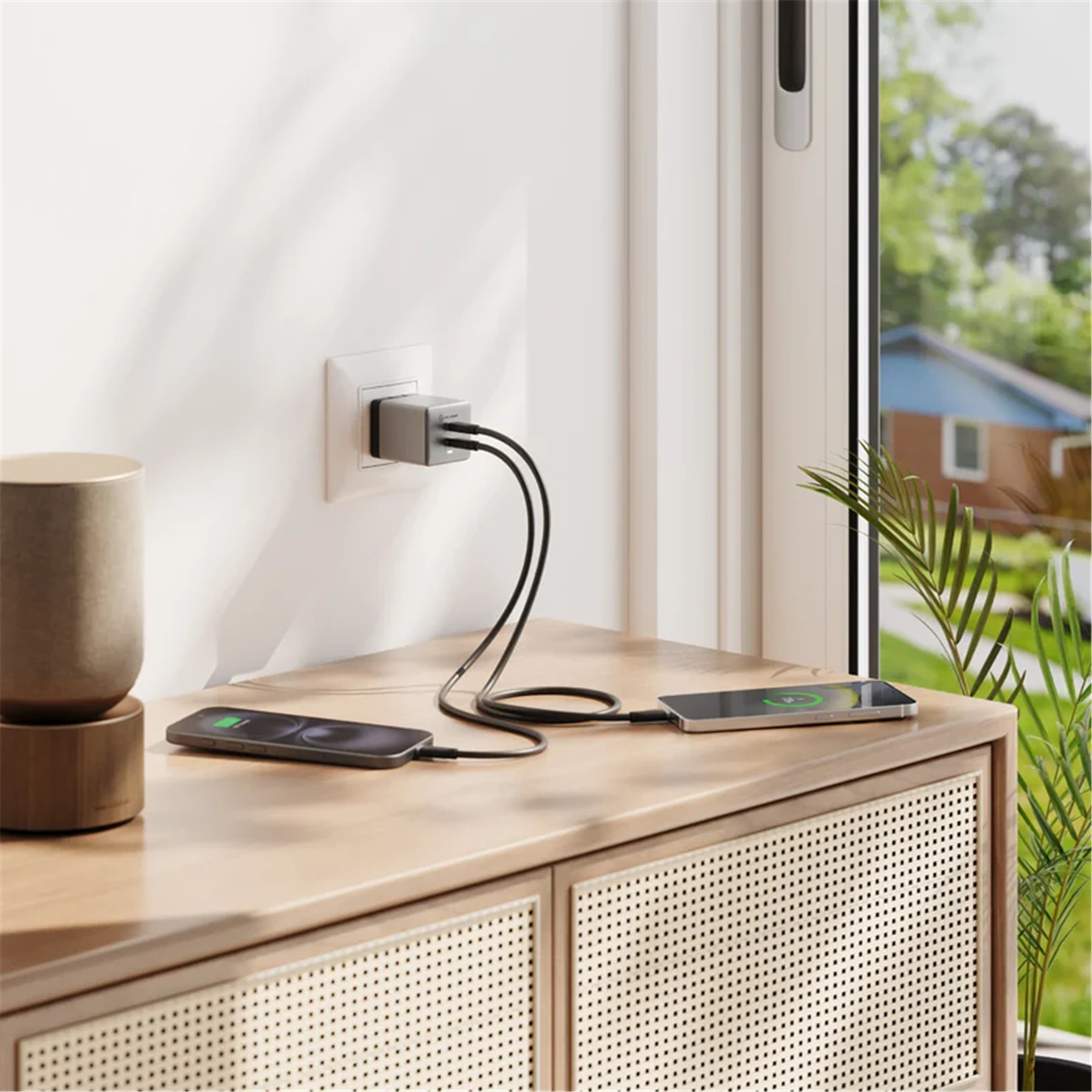 The 70W Cube GaN Charger delivers fast charging for up to two phones, tablets or even laptops.