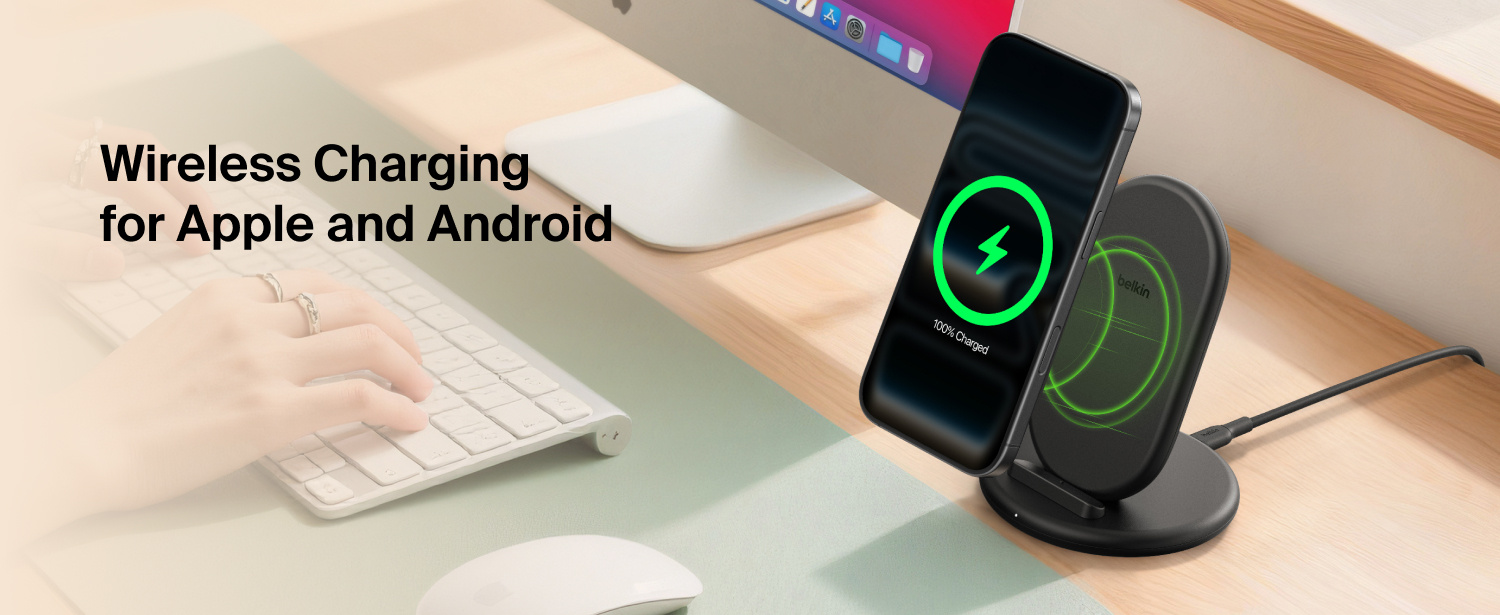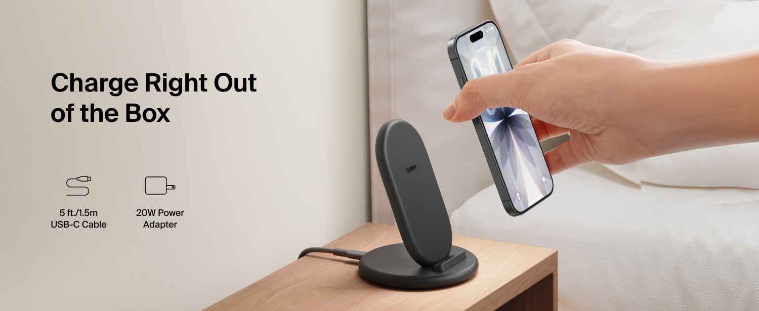 Power up fast and cable-free with up to 15W* of wireless charging. Place your phone in portrait or landscape mode to stream, scroll or video call while charging. Works through most cases (up to 5mm) and has an LED charging status indicator-perfect for your desk, nightstand or anywhere you need a boost.