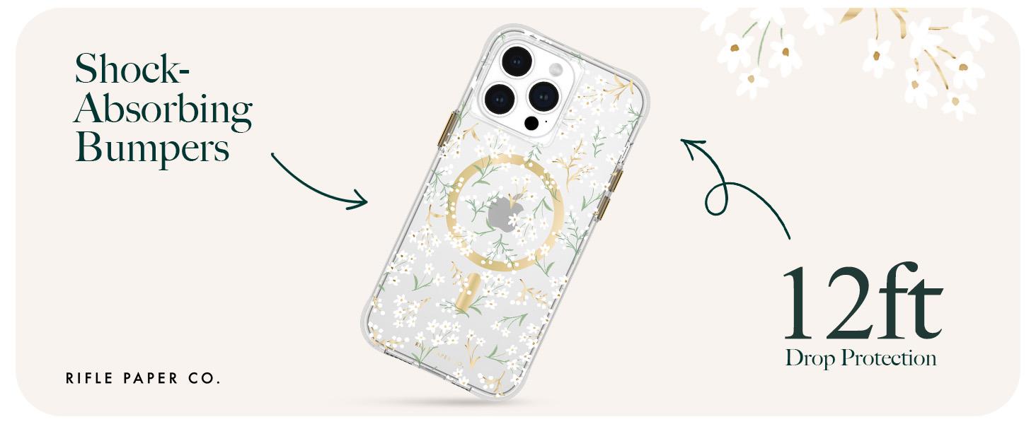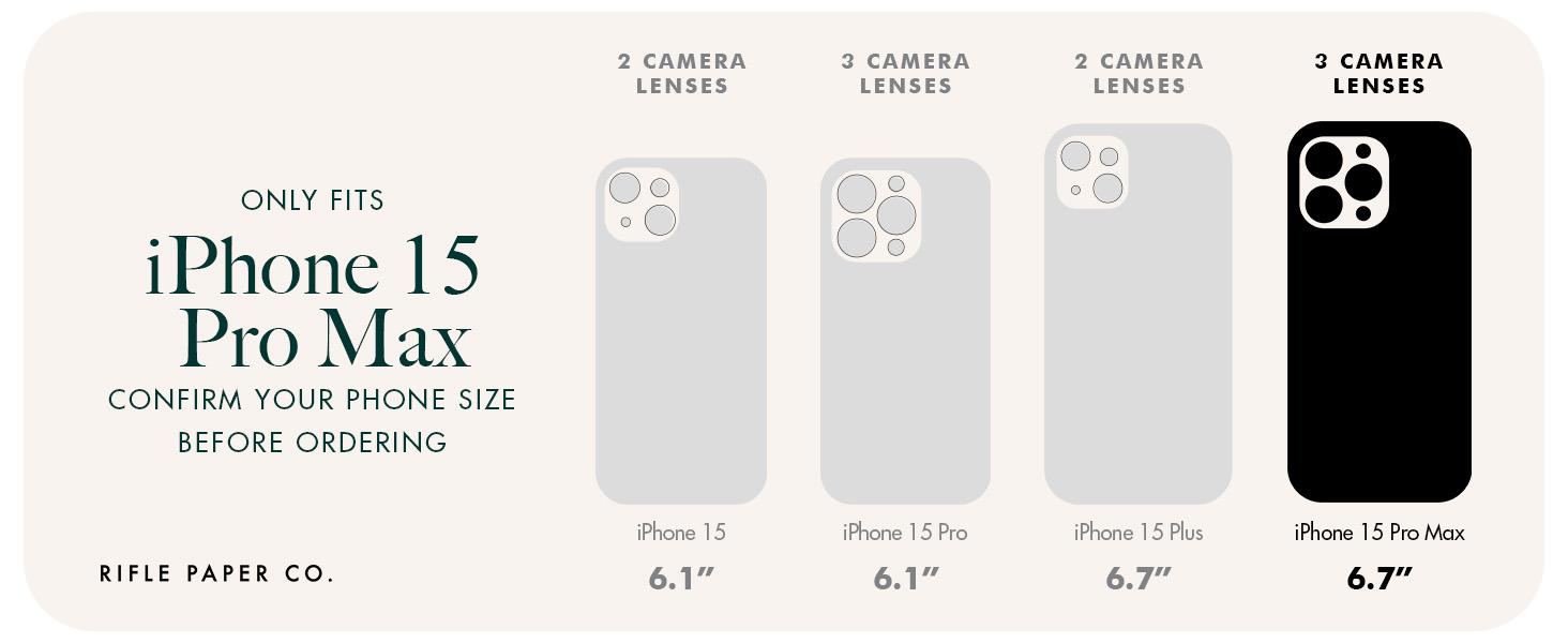 - Petite Fleurs: Made with Rifle Paper Co.'s sophisticated floral pattern, this case for iPhone 15 Pro Max provides both style and protection; It utilizes a unique printing technique and special ink to prevent the design from rubbing, fading, or smudging; This luxury case adds style to your personality and is a perfect gift for your family, friends, and loved ones