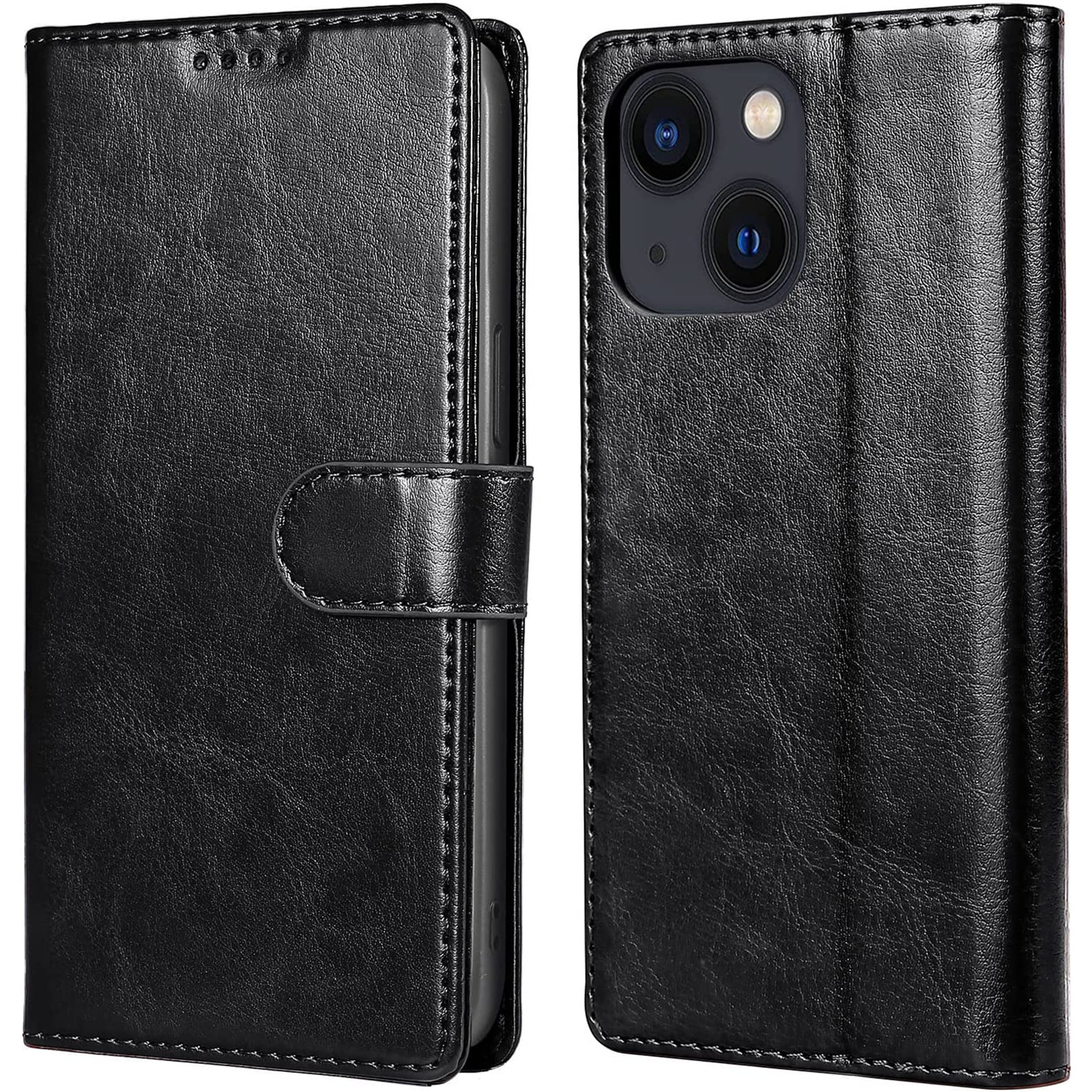 iPhone 15 Flip Wallet Case - Black, 3 Card Slots, Cash Compartment, Magnetic Clip