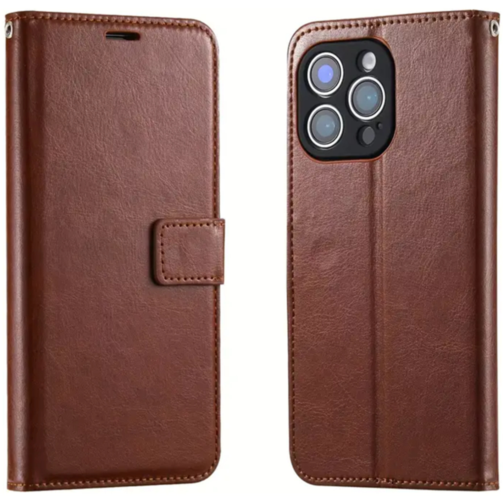 iPhone 13 Pro Max Flip Wallet Case - Brown 3 Card Slots - Cash Compartment - Magnetic Clip