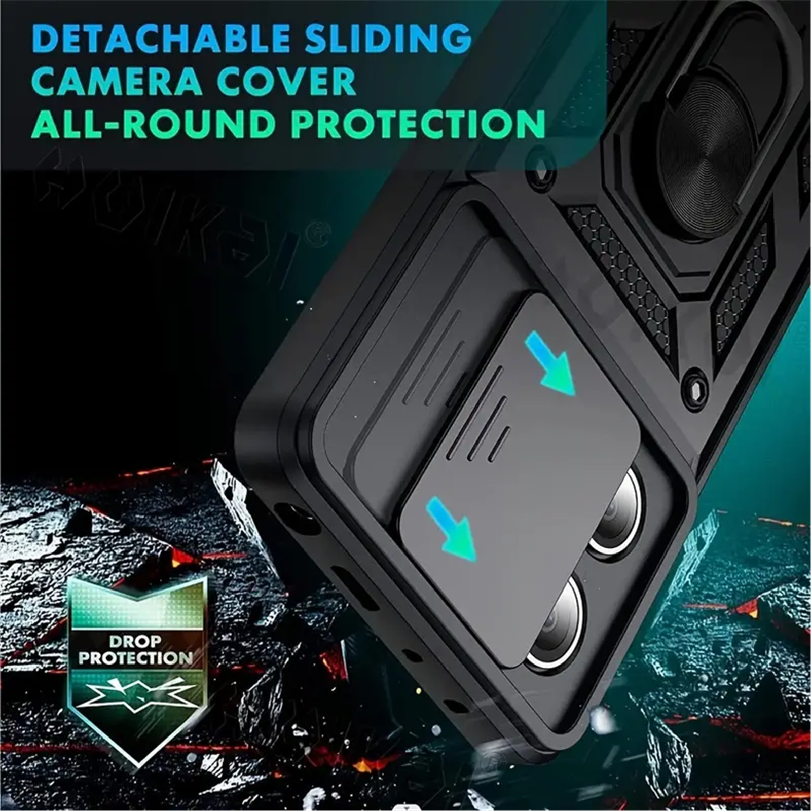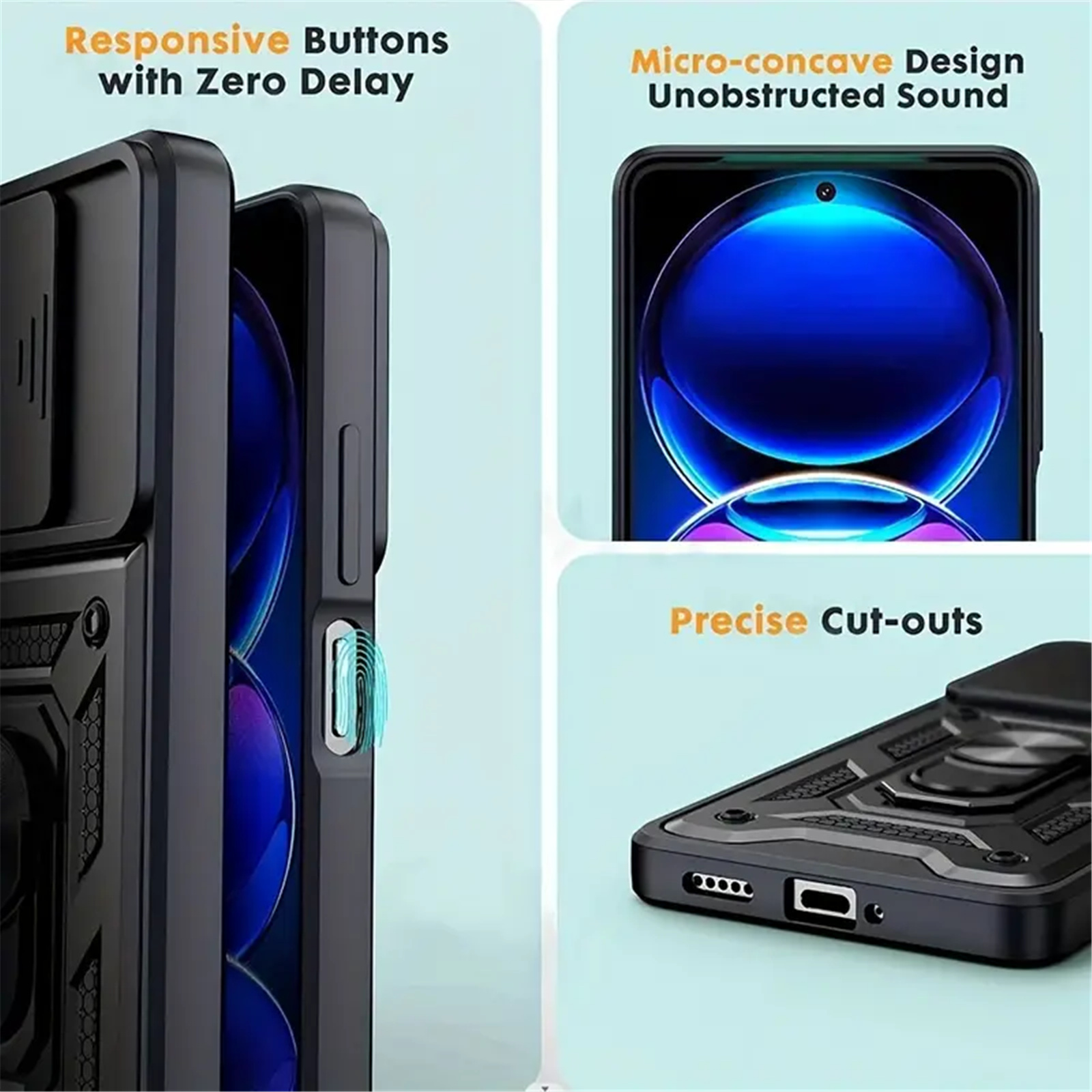 Redmi 12 LTE Rugged Kickstand Case - Black with Camera Cover Protection