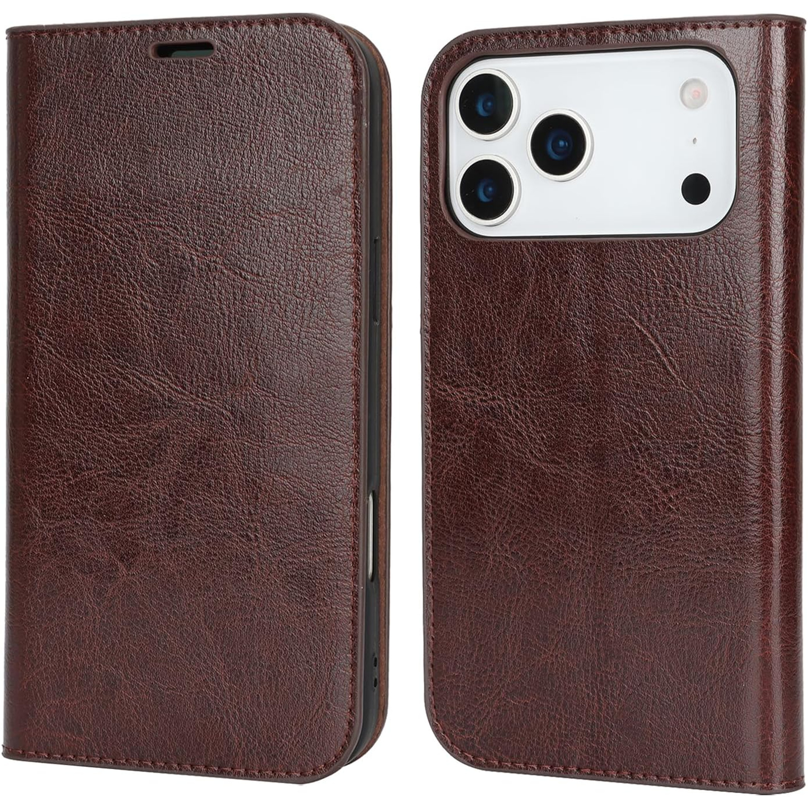 iPhone 17 Pro Max (6.9") Flip Wallet Case - Brown 3 Card Slots - Cash Compartment - Magnetic Clip
