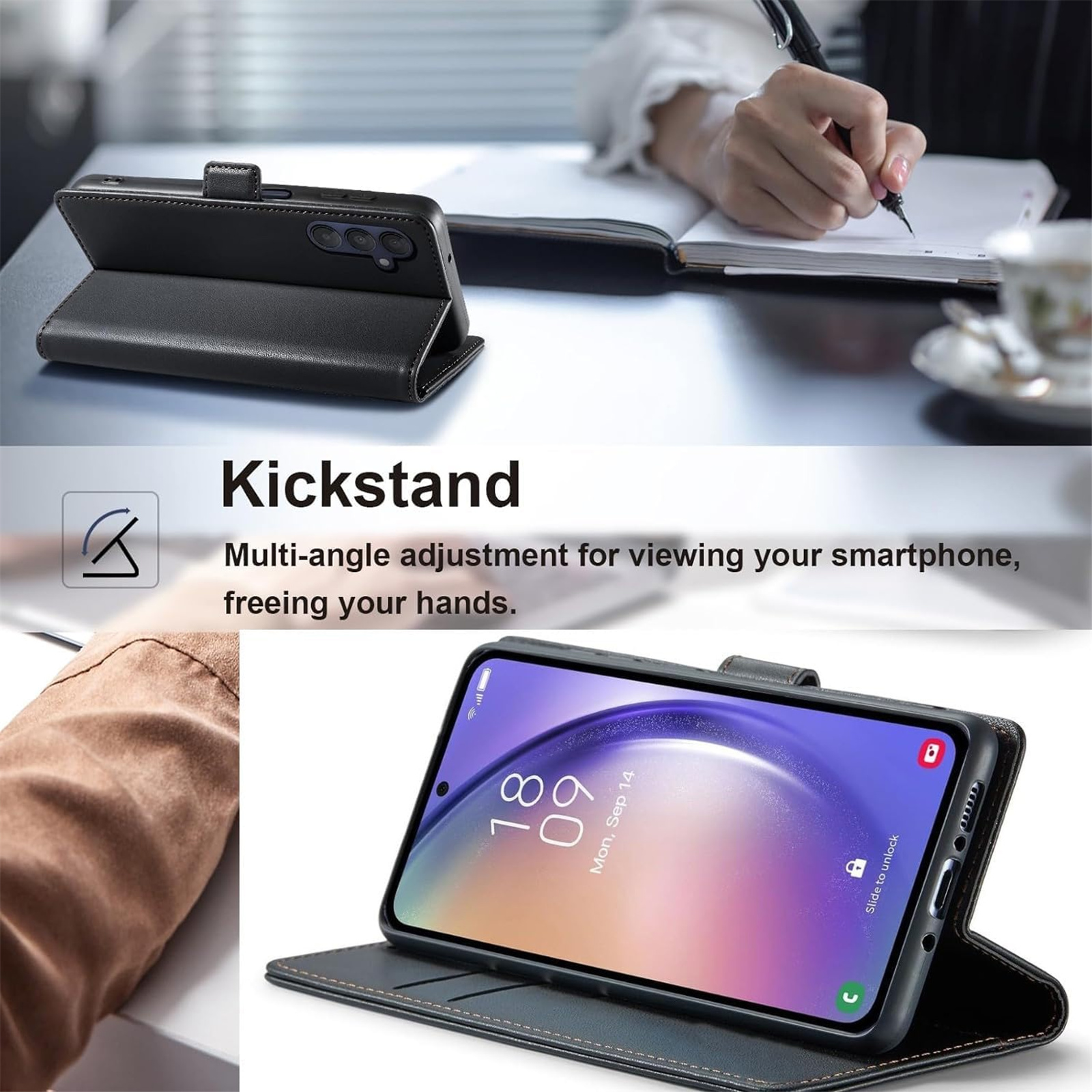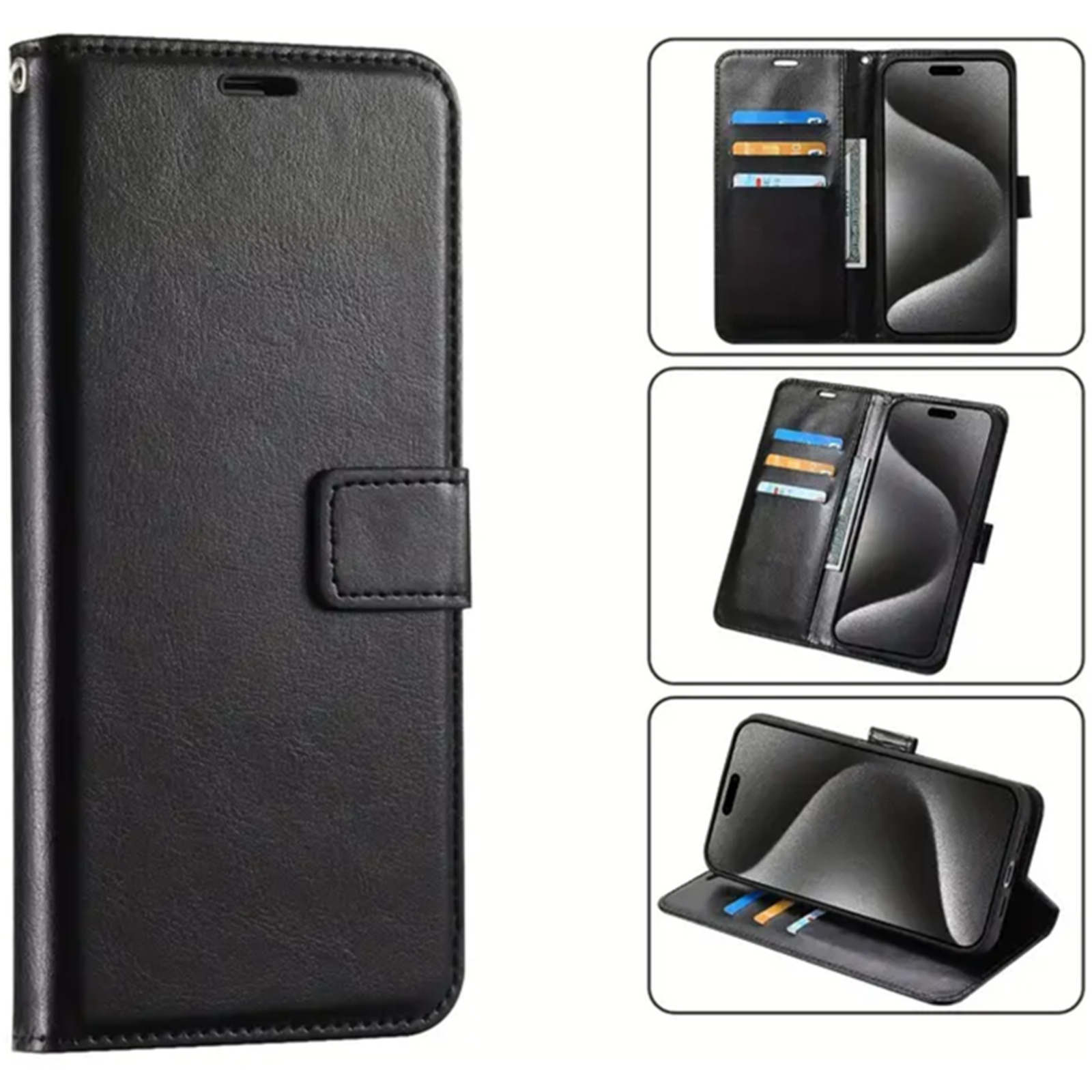Galaxy S25 FE (2025) Flip Wallet Case - Black 3 Card Slots - Cash Compartment - Magnetic Clip