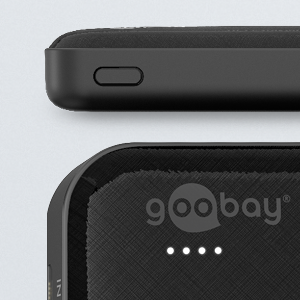 - The status display with four LEDs reliably indicates the charging status of the power bank