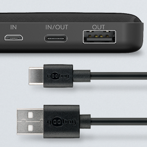 - The power bank recharges via the combined USB-C™ input/output or via Micro-USB, e.g. by connecting to a USB charger or laptop