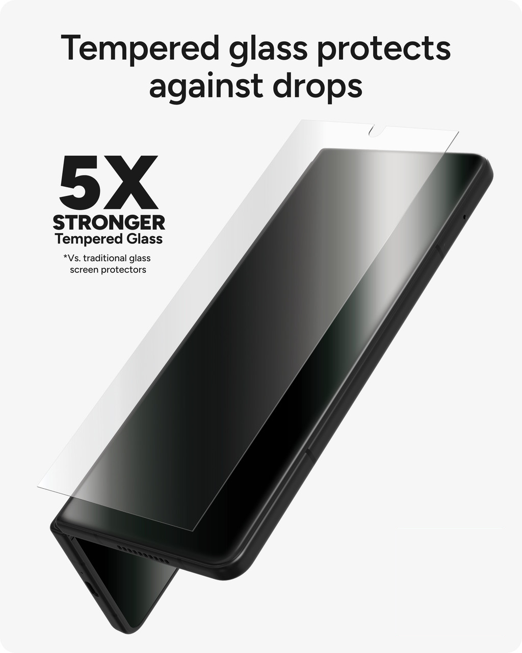 Tempered glass protects against drops - 5X stronger tempered glass