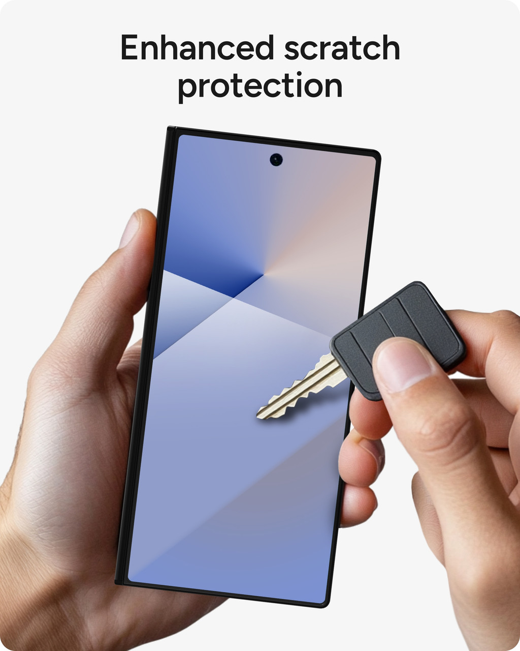 [1]Tests conducted by a 3rd party independent lab; tested up to 5X stronger than traditional glass screen protection.