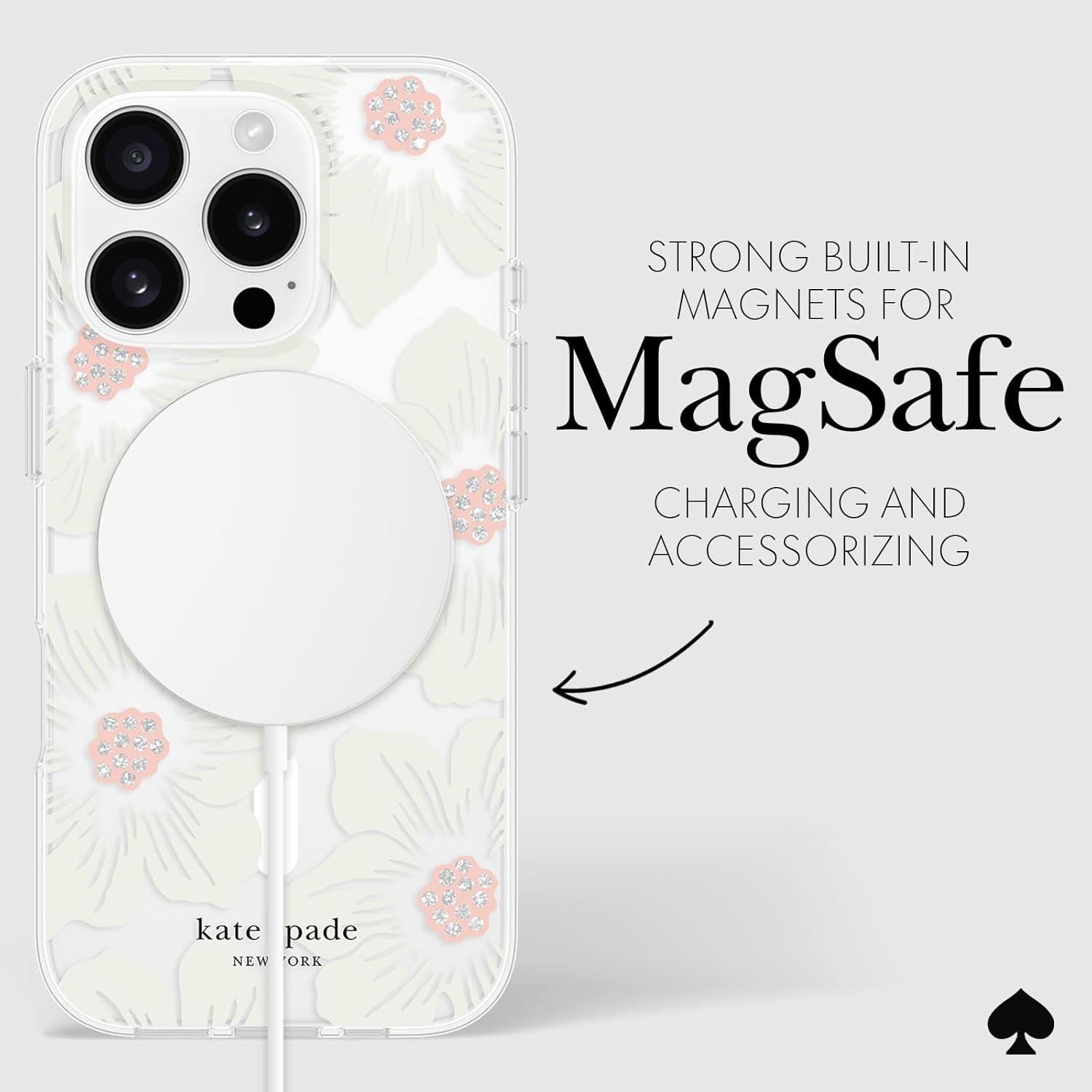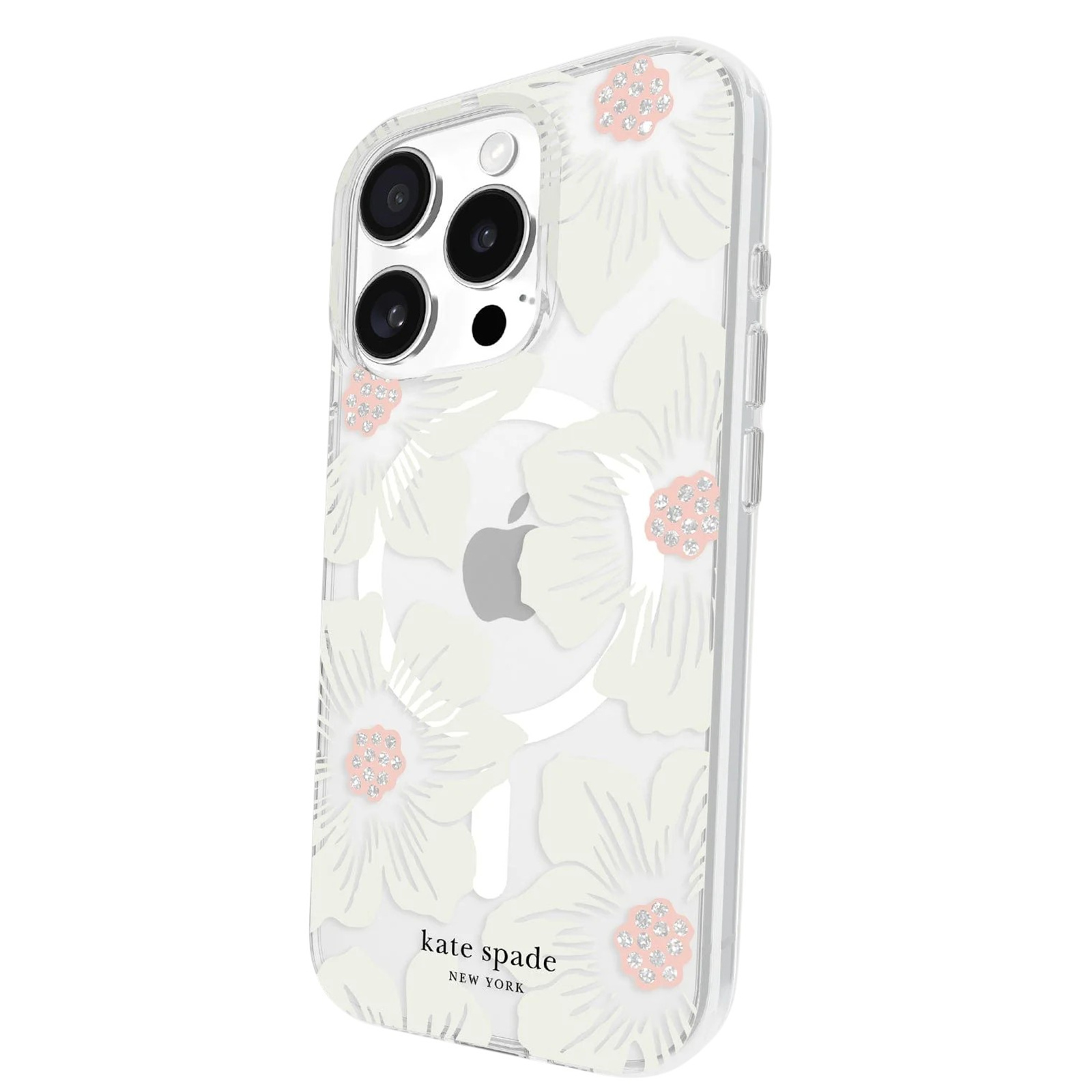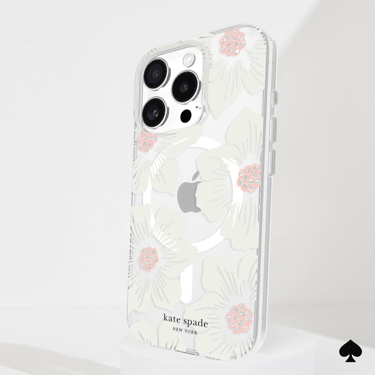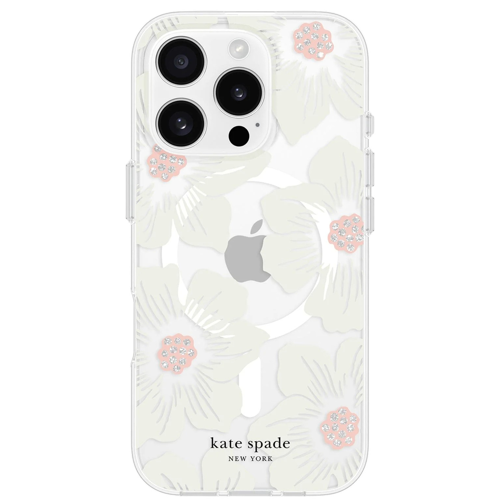 Elevate your iPhone 16 Pro with this chic Kate Spade New York case; Dazzling with shimmering silver details, this iPhone 16 Pro case for women offers easy access to all buttons and ports; Enjoy seamless usability with this stylish, lightweight, and protective phone case.