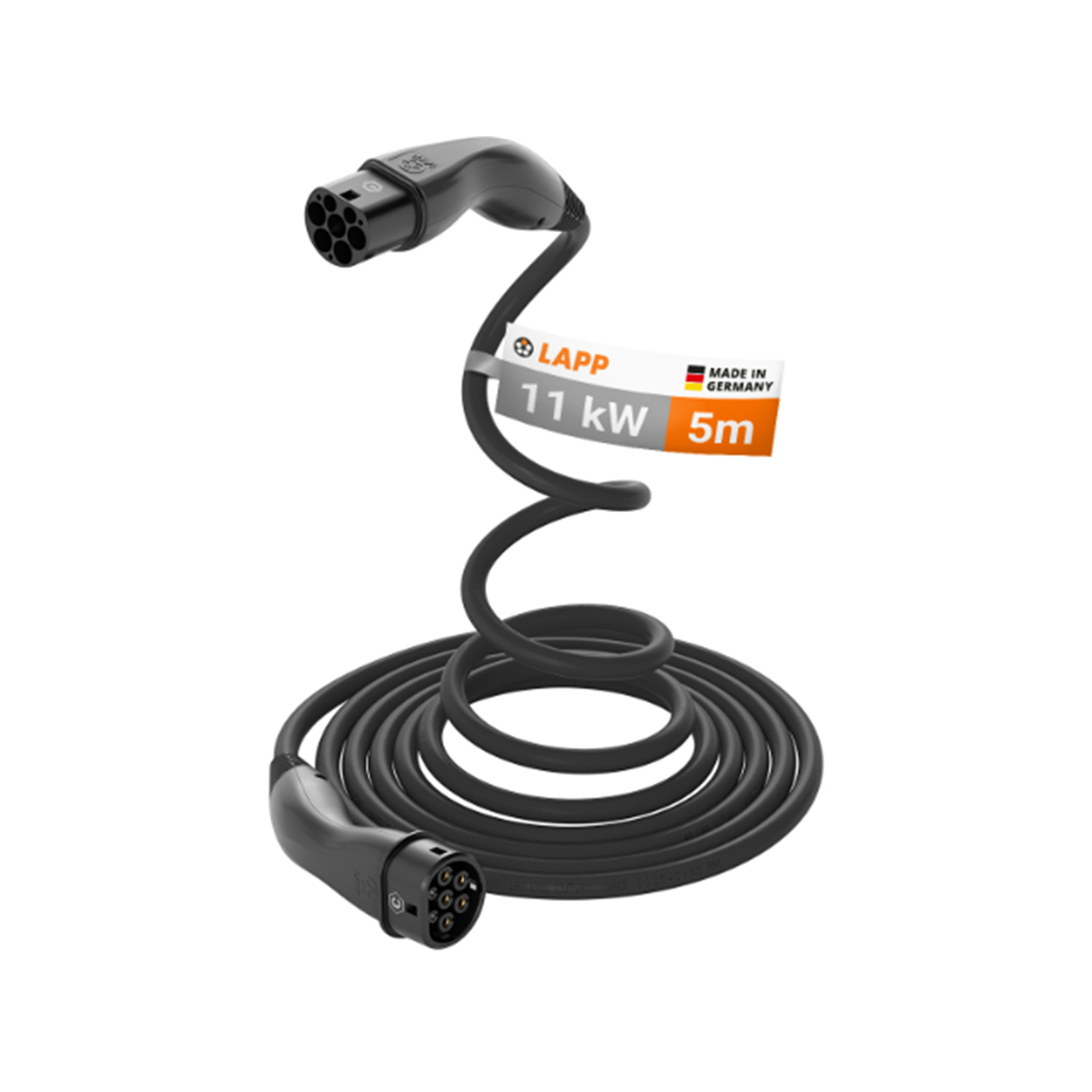 LAPP 11kW - 20A EV Charging Cable - 5m - Black Type 2 - 3-Phase - Helix