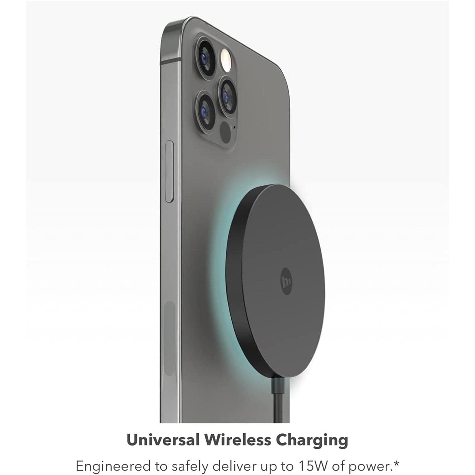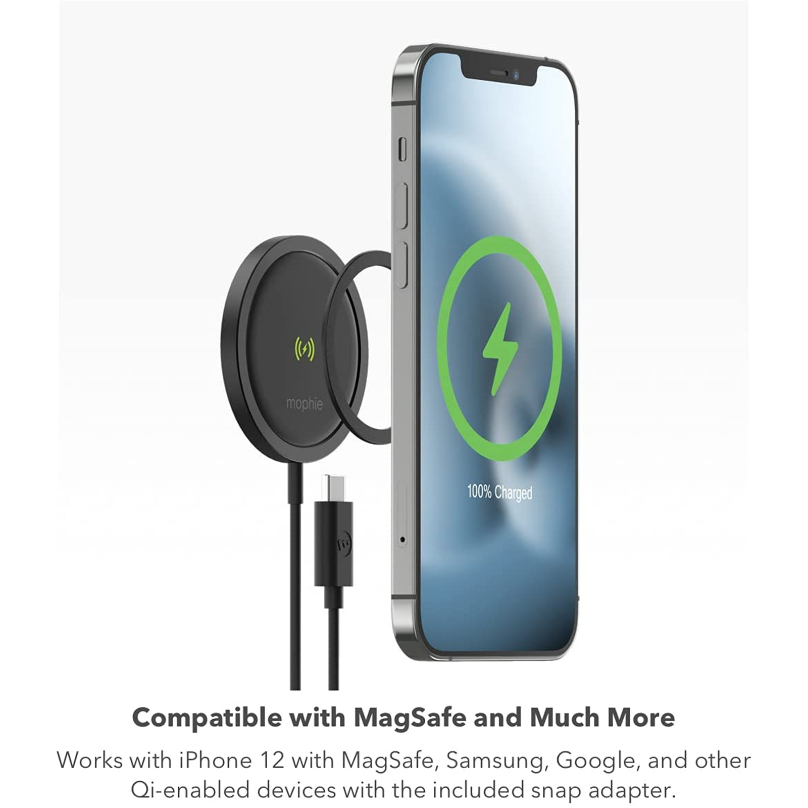 Mophie Snap+ 15W Wireless Charging pad - Black, Up to 15W Fast Charge, Compact and Convenient, Compatible with Apple MagSafe Charging, Snap Adapter Included for non-magsafe devices
