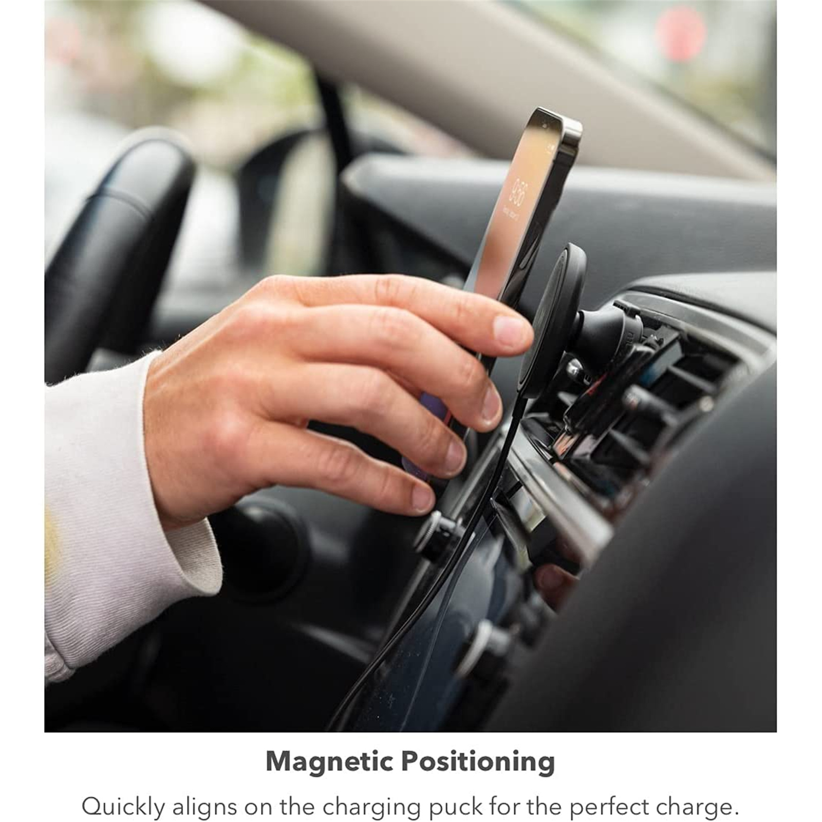 Mophie Snap+ 15W Wireless Charging Air Vent Car Mount USB-C Car Chager - Black Up to 15W Fast Charge - Compatible with Apple MagSafe Charging - Snap Adapter Included for Non-Magsafe Devices