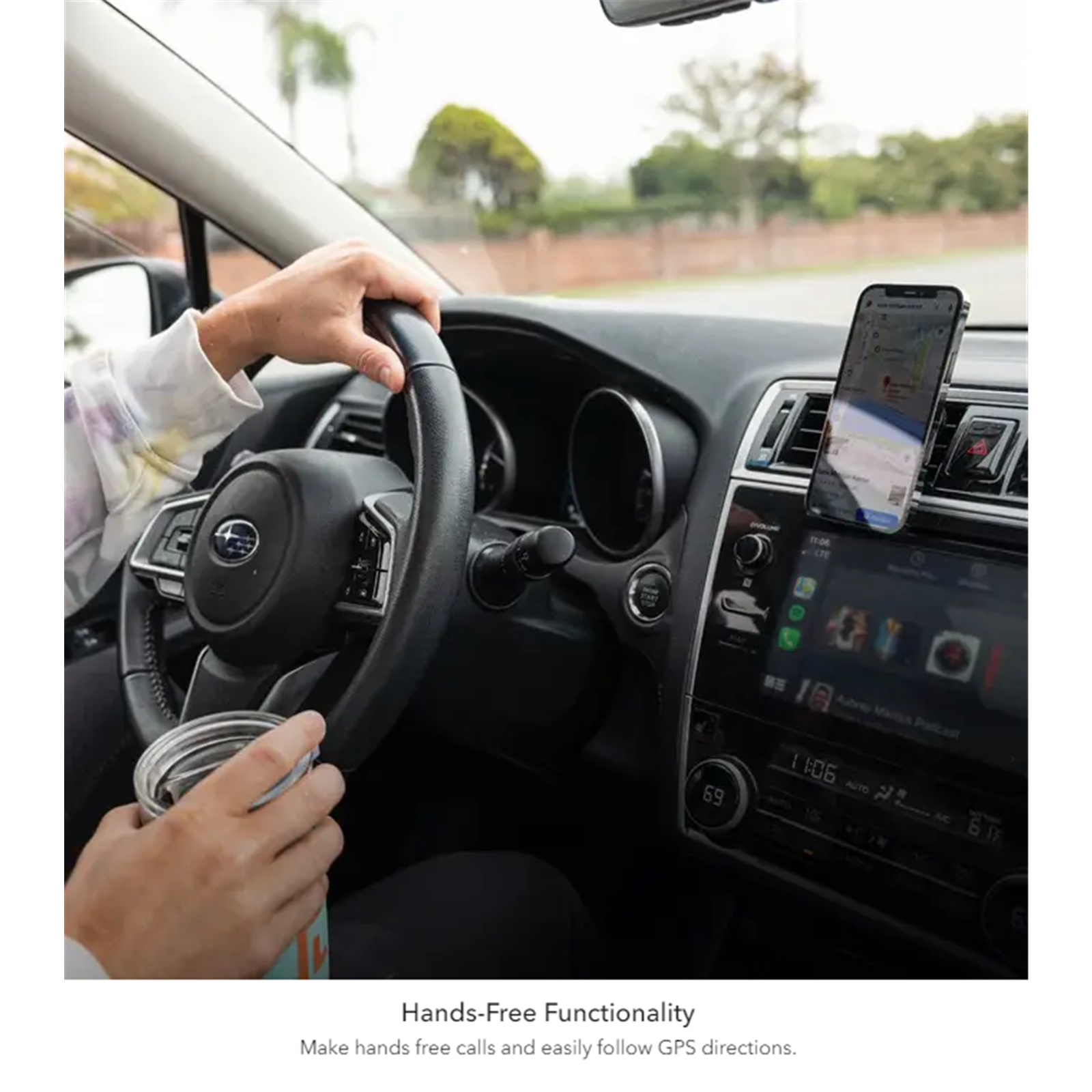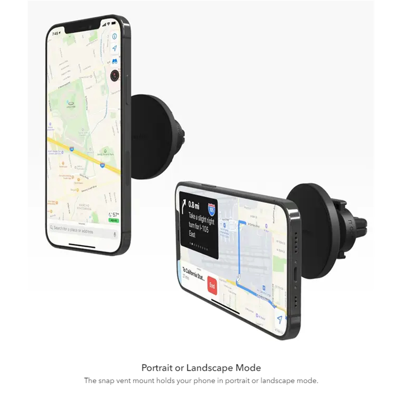 Keep your phone at the perfect viewing angle while you drive. mophie's snap vent mount uses a convenient magnetic array to hold your phone in place, so it's easy to make hands-free calls and follow GPS directions.