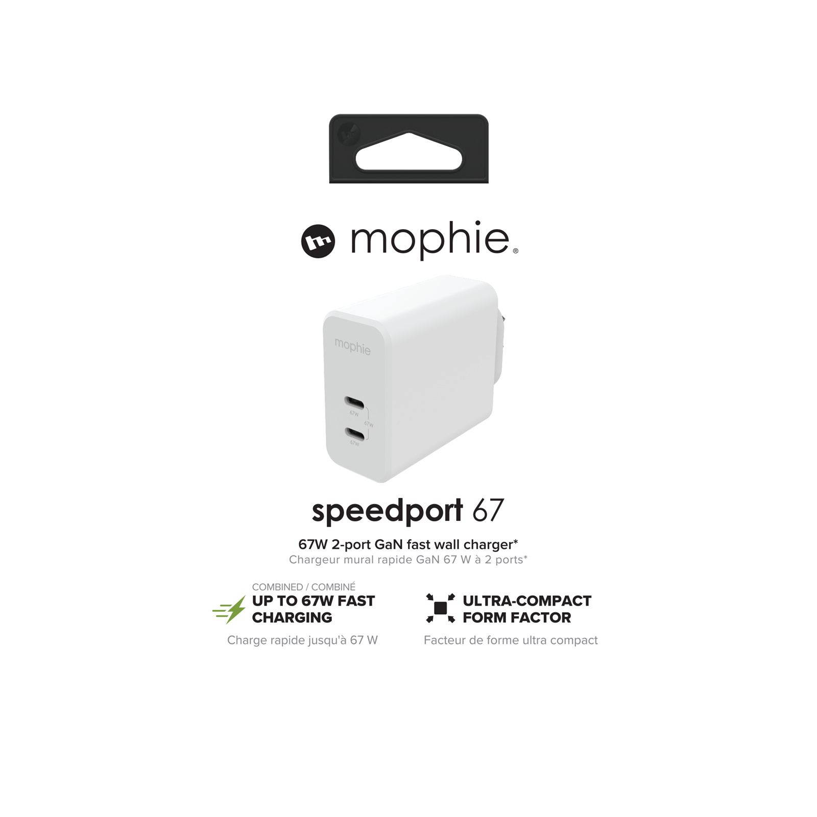 Mophie 67W Dual USB-C PD GaN Wall Charger - White, Compact Size, Up to 67W Fast Charging Apple iPhones, Samsung Smart Phones, Solid Construction