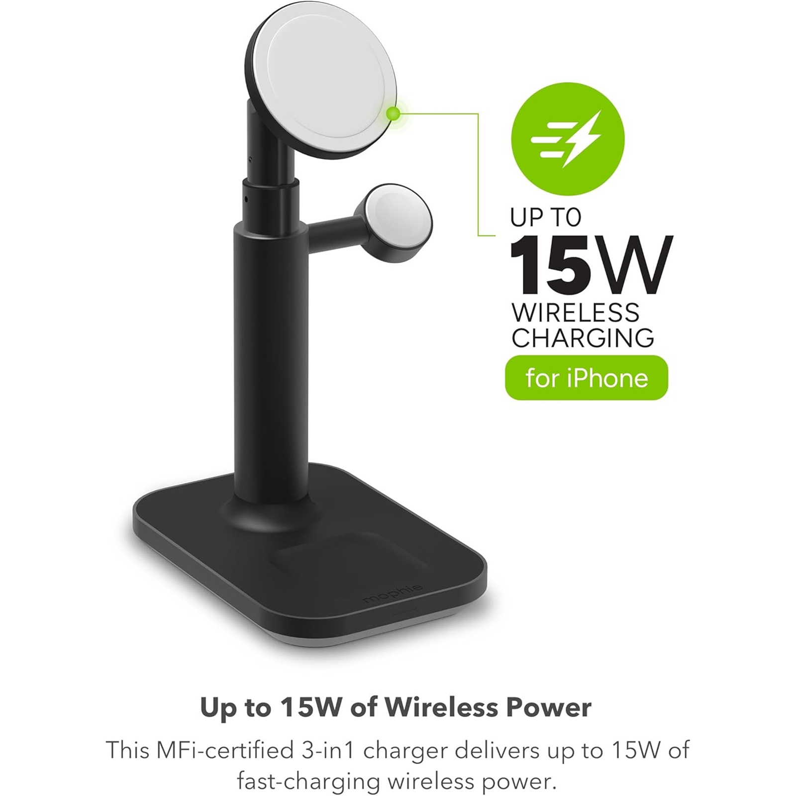 Mophie Premium 3-in-1 Magsafe Wireless Extendable Charging Stand - Black