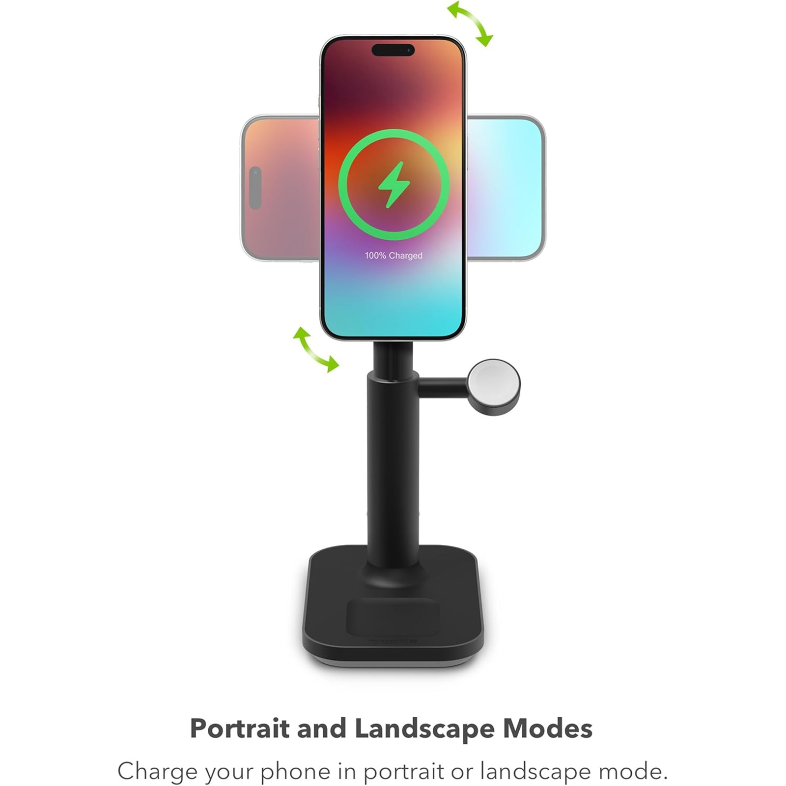 Portrait and Landscape Modes: The 3-in-1 extendable stand with MagSafe can charge your phone in portrait or landscape mode.
