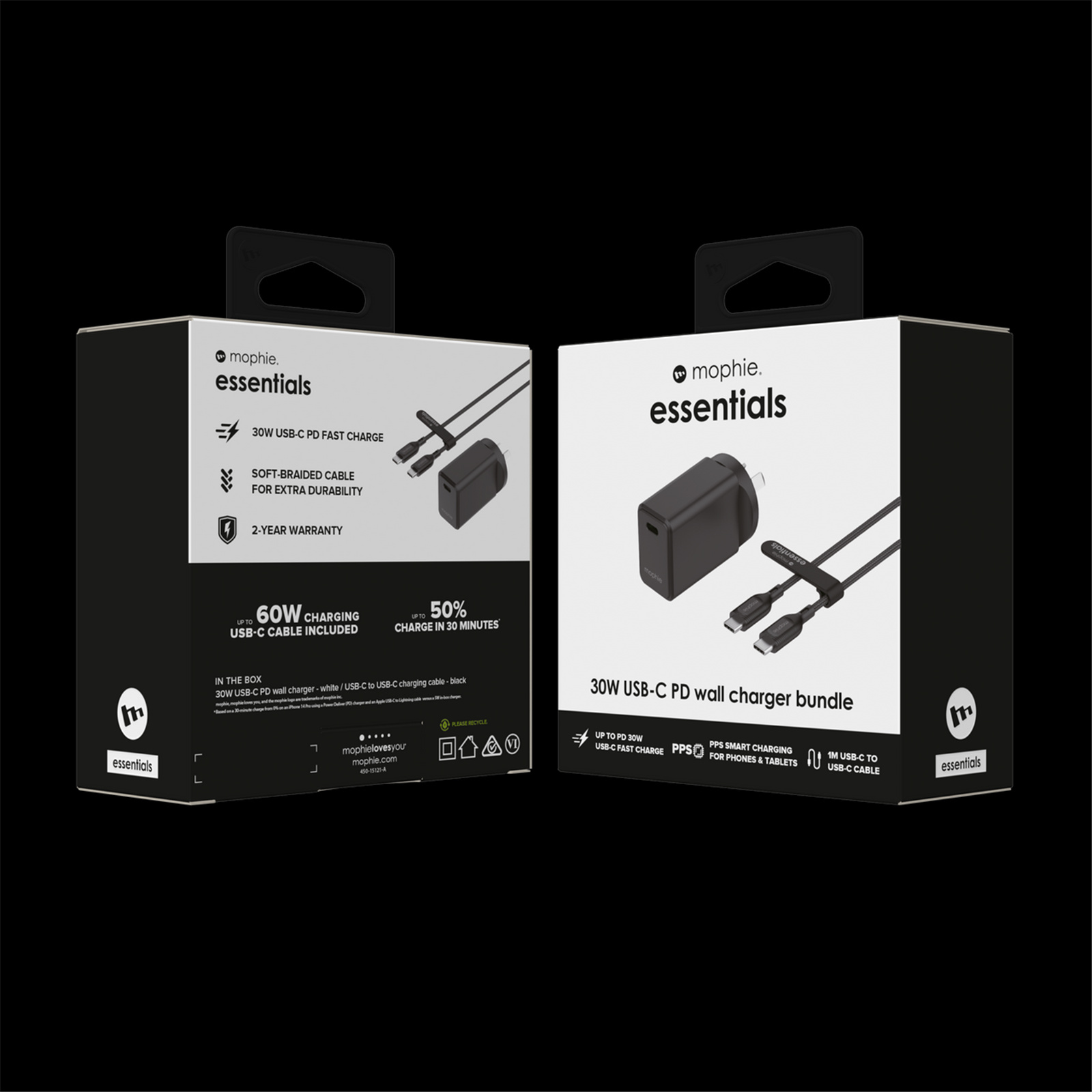 The mophie essentails 30W PD Wall Charger & 1m C to C Cable bundle delivers up to 30W of fast charging power to your portable device. PD (Power Delivery) technology increases charging efficiency and speed, so you get a lot of power in a compact cube that fits easily in your bag or pocket.