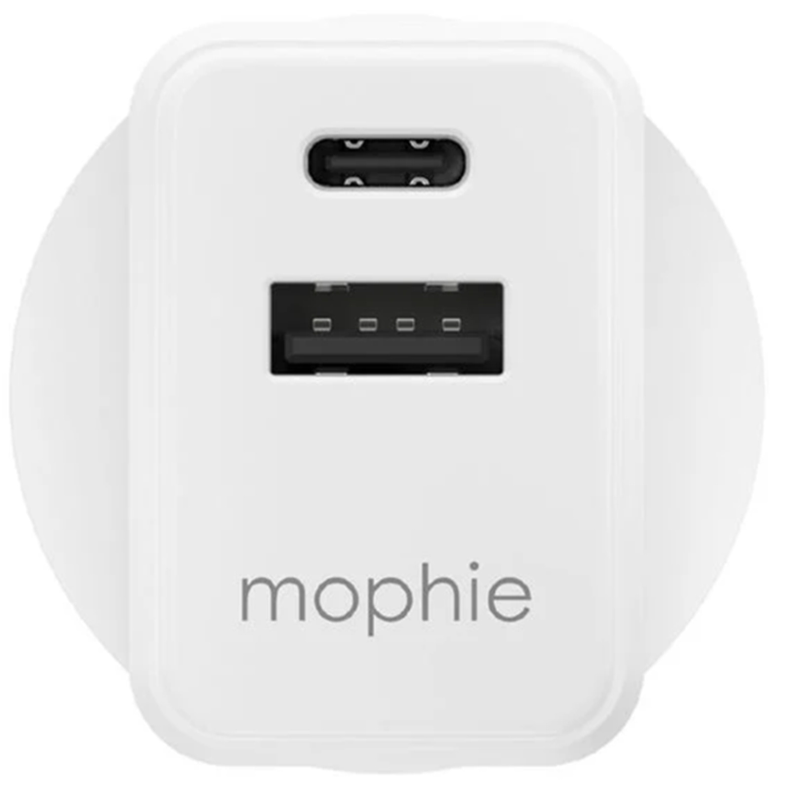 Mophie Essential 30W PD Dual Port Wall Charger - White, 1 USB-C, 1 USB-A Up to 30W Fast Charging Apple iPhones, Samsung Smart Phones, Solid Construction