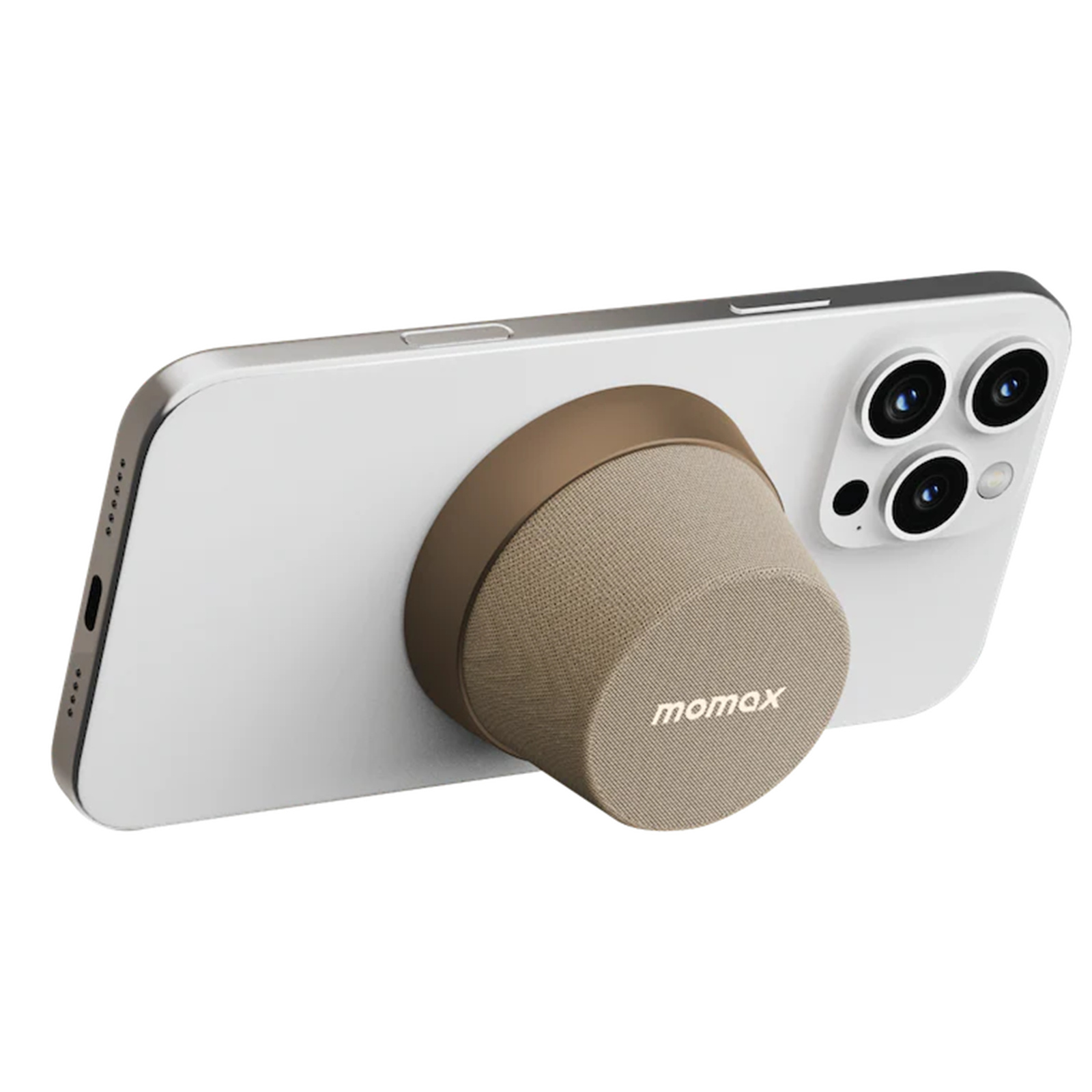 Momax 2 in 1 Magnetic Portable True Wireless Speaker Phone Stand - Sandstone - IPX6 Water Resistant, Magnetic & Compact Attachment Design, Fit For iPhones with Magsafe or Magnetic Phone Cases, Double as a Phone Stand