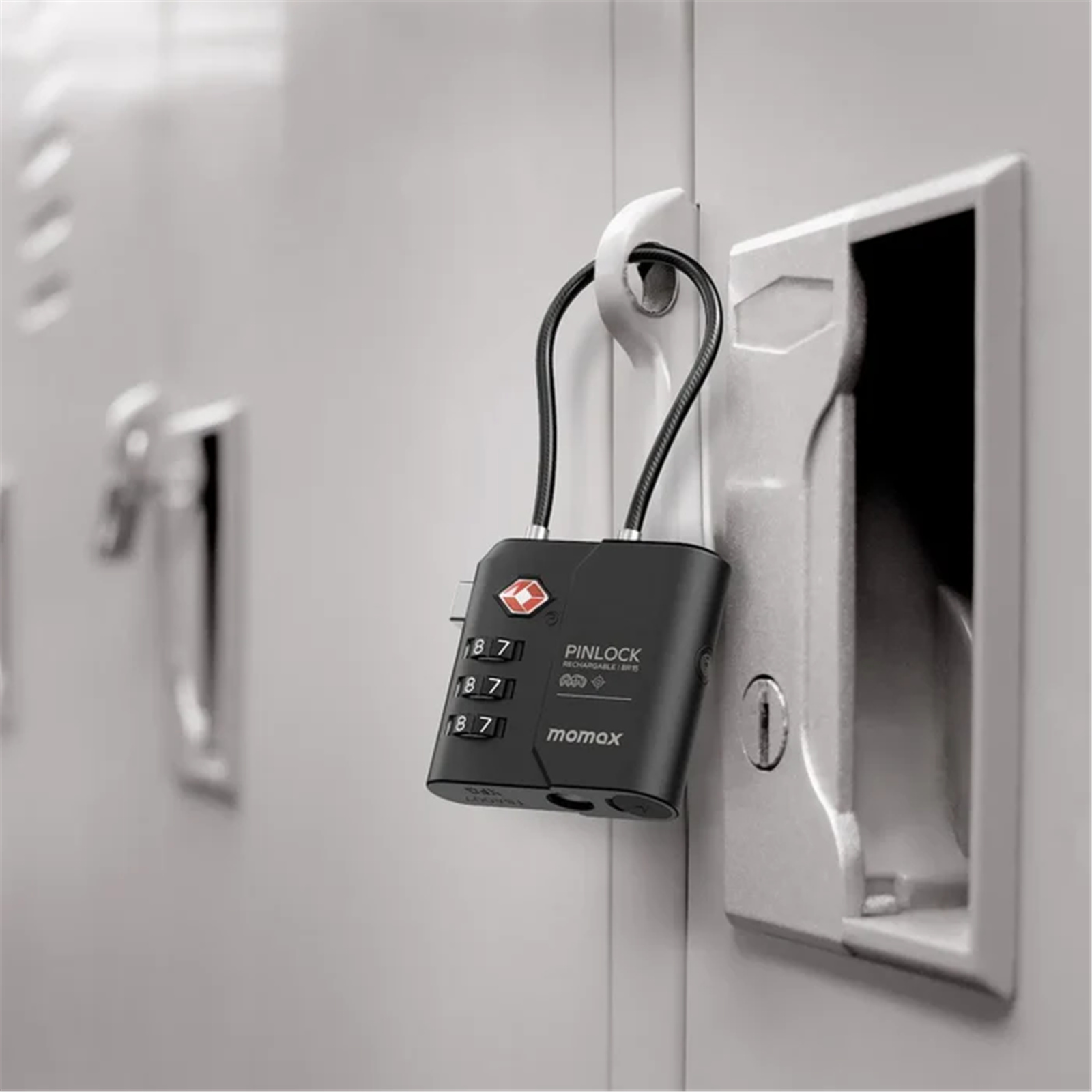 Lock and track your belongings with Momax PinLock Find My Locator! Seamlessly integrated with Apple Find My app, it offers TSA-approved security, anti-stalking feature for privacy, two-way alarm system, and long-lasting battery life.
