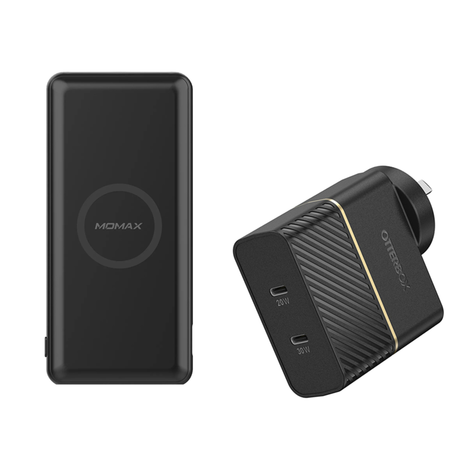 OtterBox 50W Combined Dual USB-C Wall Charger & Momax 10000mAh Wireless Fast Charging Power Bank