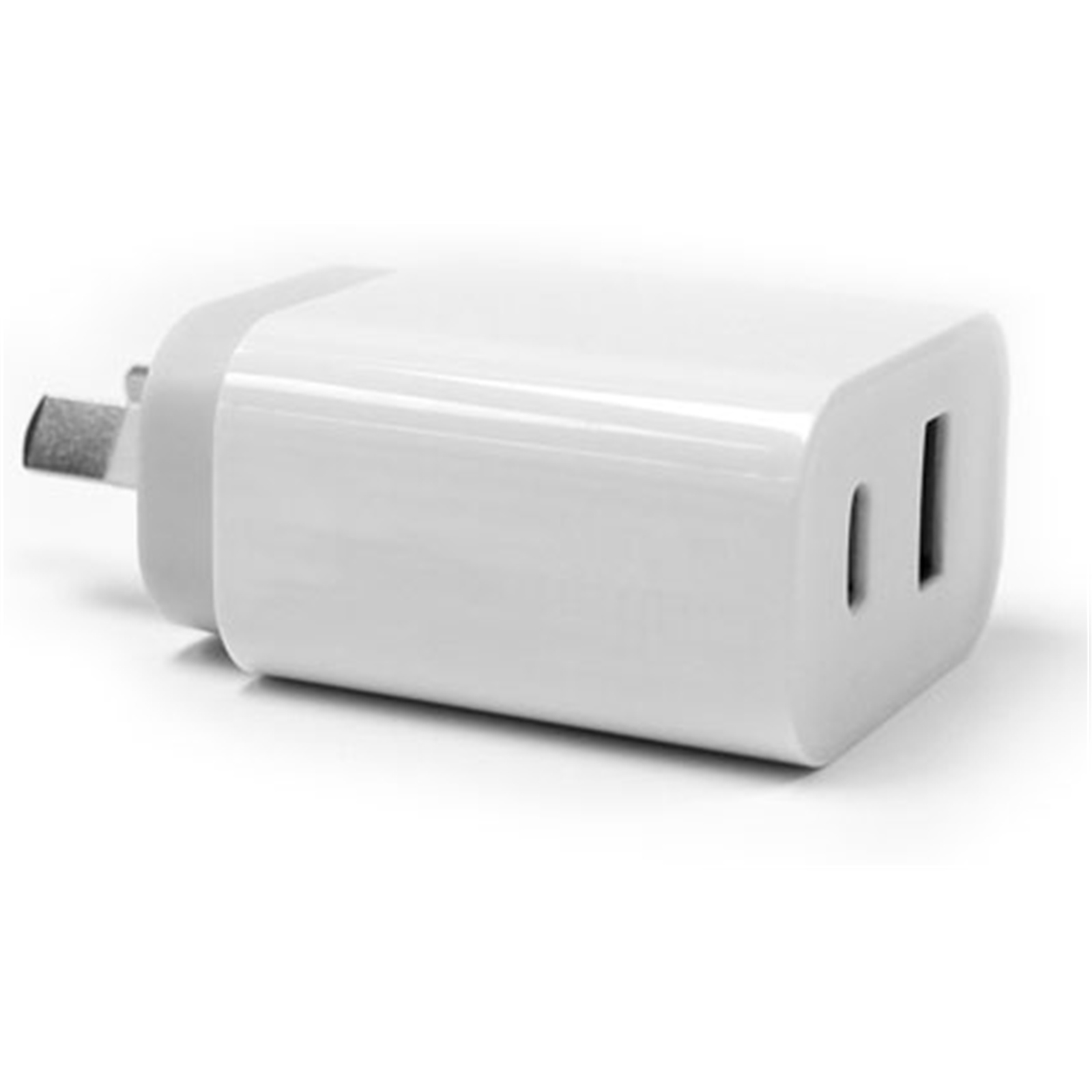 PUDNEY P1296 Dual USB-A & USB-C Wall Charger - White Output: 5VDC - 3.4A 17W (USB-A 5V2.4A & USB-C 5V3A Max.) AU/NZ SAA Approved