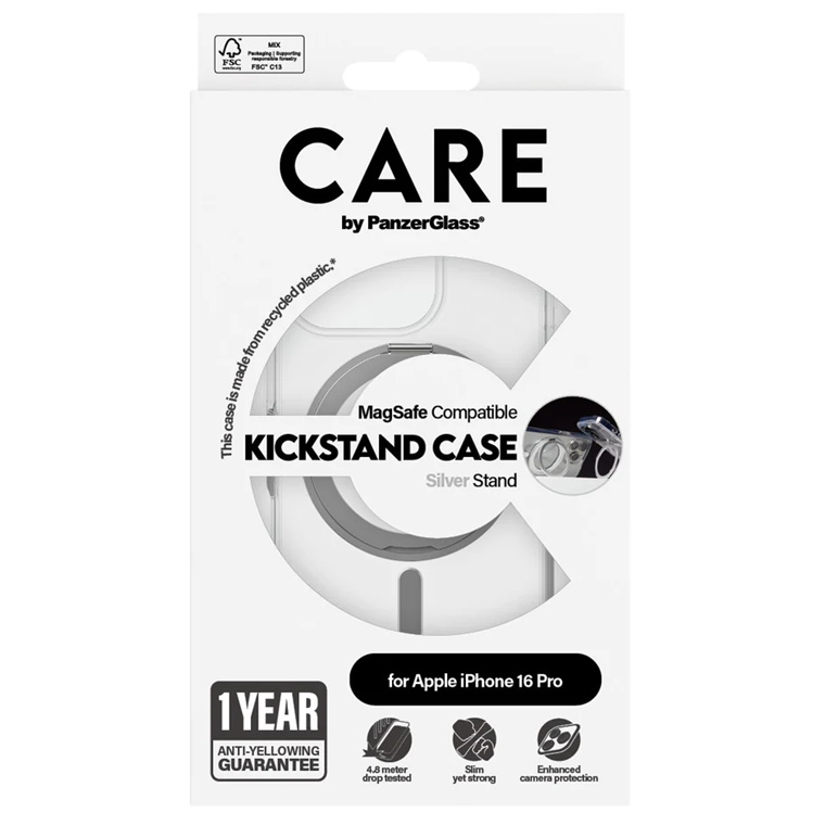 PanzerGlass iPhone 16 Pro CARE by PanzerGlass 1326 Transparent Case with Silver Kickstand & MagSafe