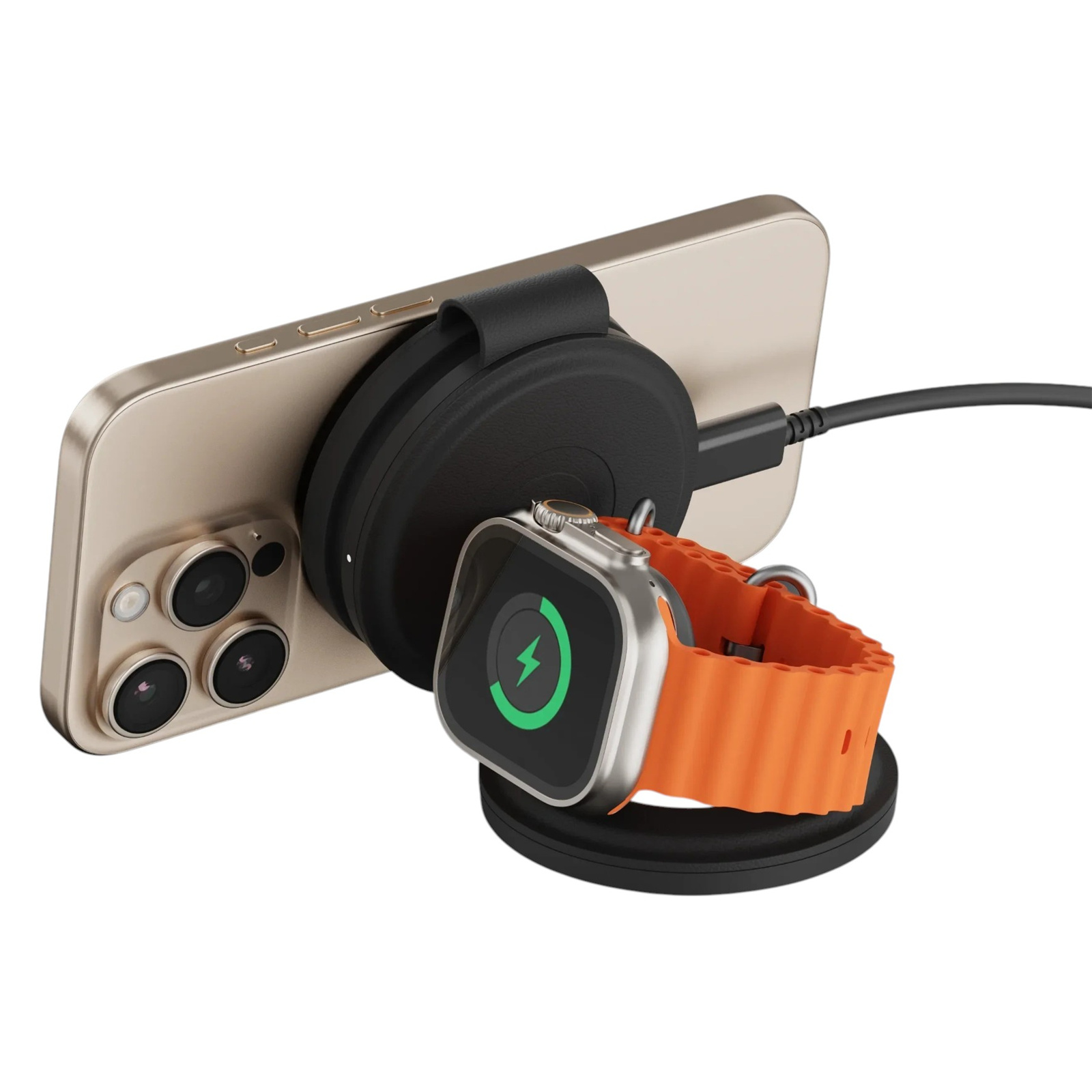 Eliminate clutter with a single charger for your iPhone, Apple Watch, and AirPods. The versatile design supports multiple charging modes: landscape, StandBy, or flat mode for your iPhone, and flat or Nightstand mode for your Apple Watch.