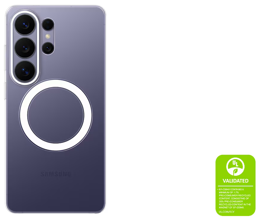 The Clear Magnet Case has anti-yellowing and anti-fingerprint coating, keeping your Galaxy protected while maintaining your phone's original design without smudges or discoloration over time. The smooth edges and slim profile of the Clear Magnet Case make it comfortable to hold and easy to carry, while maintaining a sleek, natural grip in your hand. Built-in magnets in the Clear Magnet Case help align your Galaxy S26 Ultra for fast wireless charging. You can seamlessly attach and detach a range of compatible magnetic accessories. Just snap it on your Galaxy S26 Ultra.