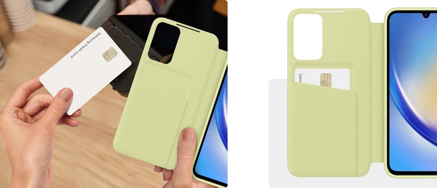 Inspired by nature and green design, Galaxy A34 5G Smart View Wallet Case helps to protect your device.