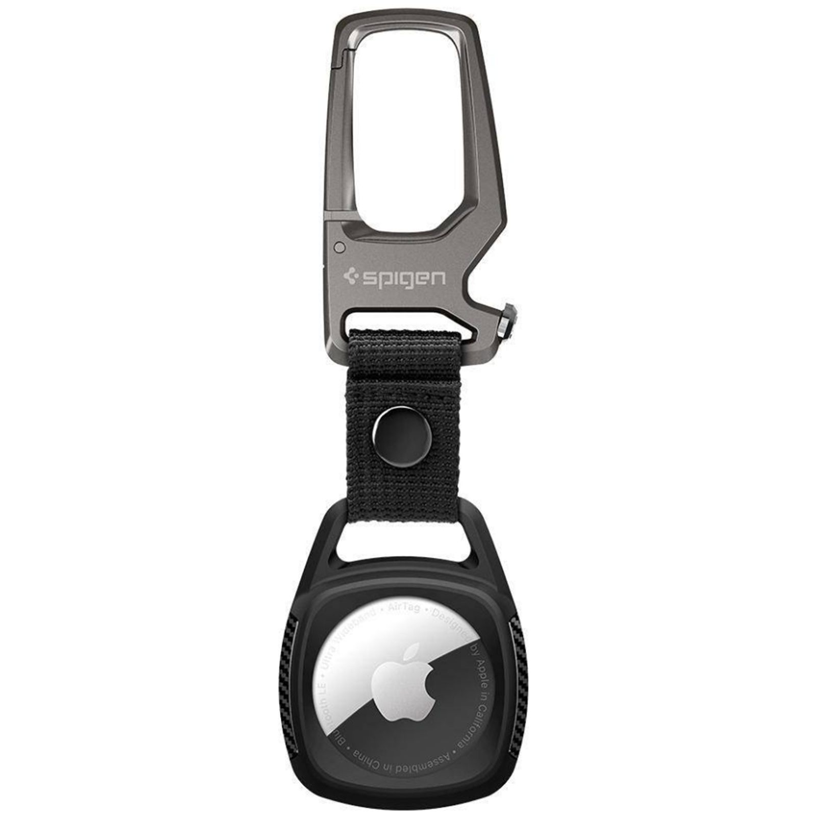 Spigen Apple AirTag Rugged Armor Case - Black, Durable Zinc Alloy & Stainless Steel Carabiner, Lightweight, Designed for multipurpose usage